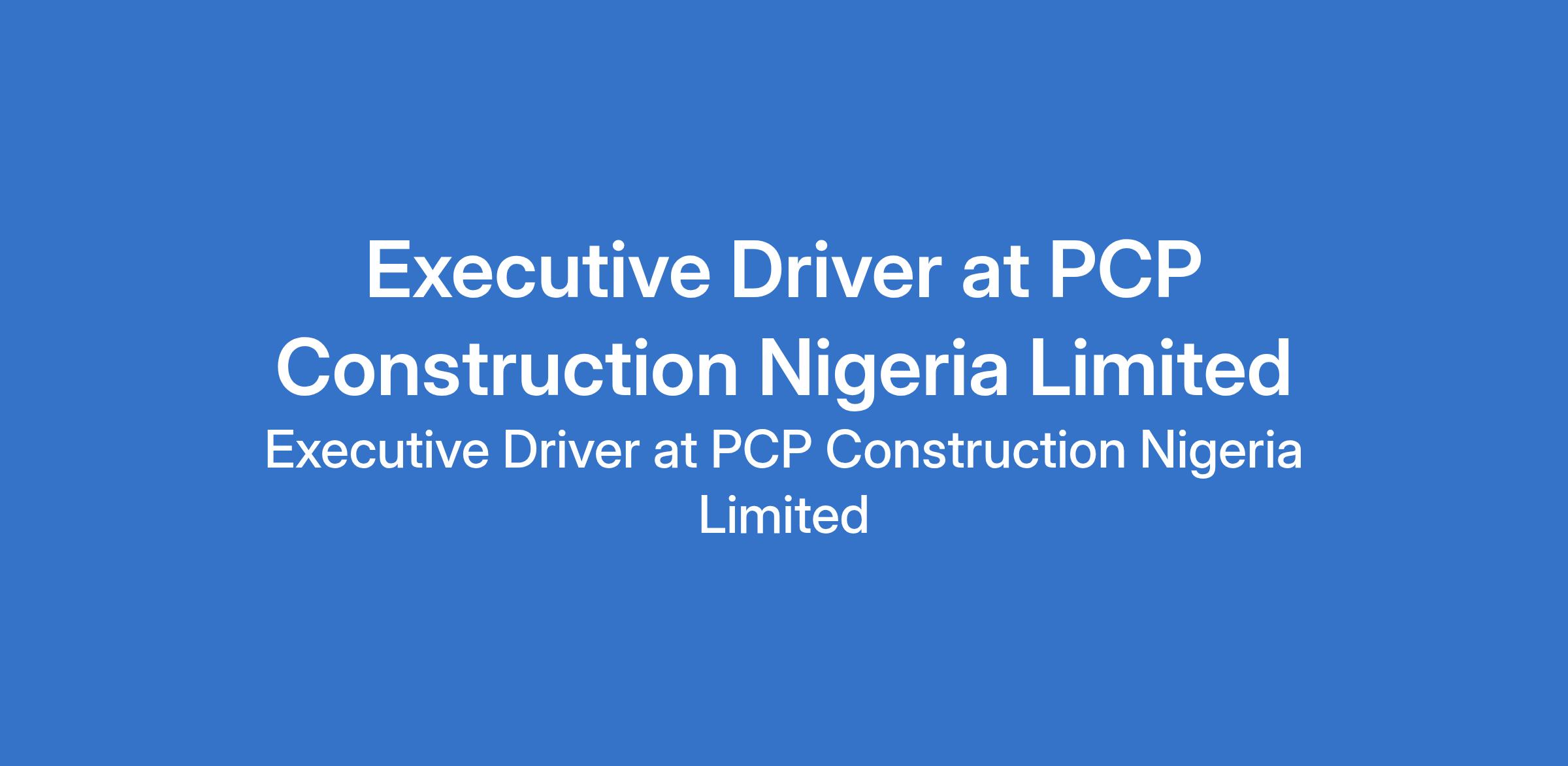 PCP Construction Nigeria Limited is recruiting to fill the position of: Executive Driver. The position is located in Lekki, Lagos State. Interested candidates should possess relevant qualifications with 5 years of relevant driving experience including previous experience chauffeuring an executive.
