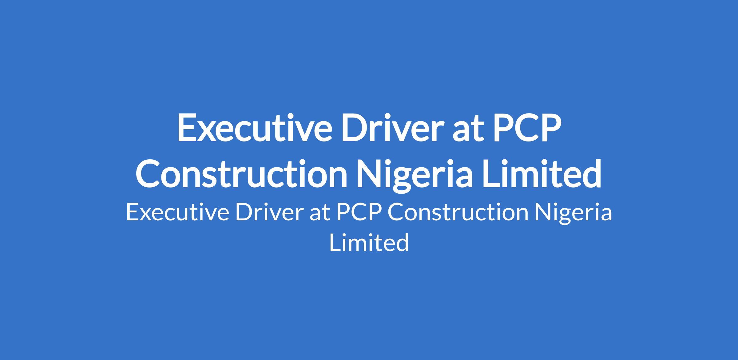 PCP Construction Nigeria Limited is recruiting to fill the position of: Executive Driver. The position is located in Lekki, Lagos State. Interested candidates should possess relevant qualifications with 5 years of relevant driving experience including previous experience chauffeuring an executive.