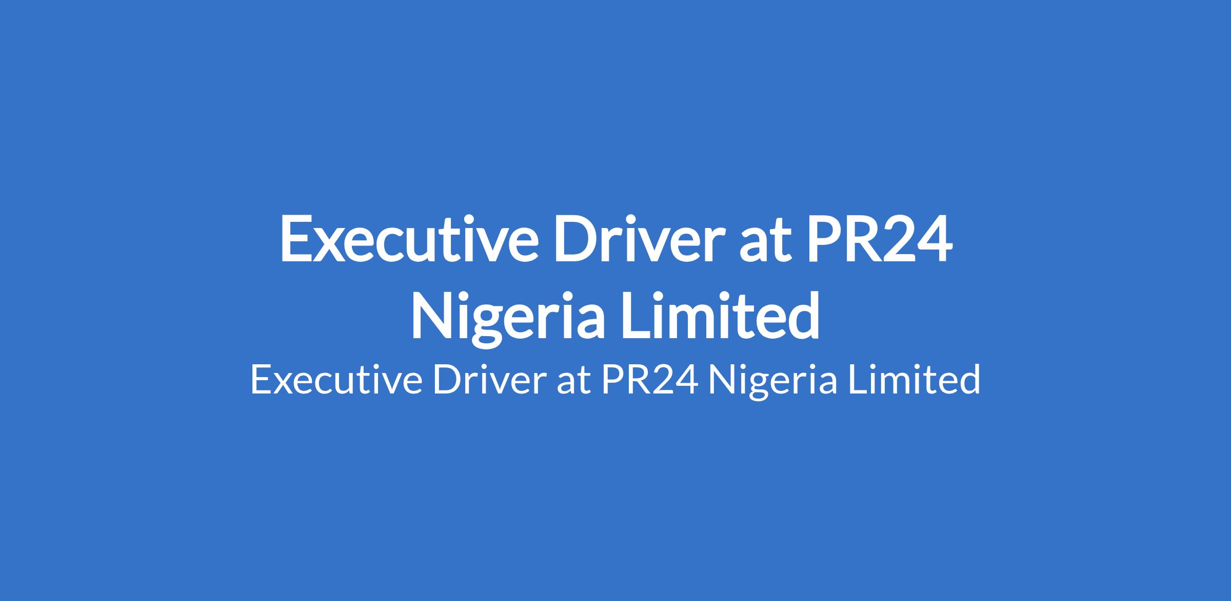 PR24 Nigeria Limited is recruiting to fill the position of: Executive Driver. The position is located in Portharcourt Rivers, State. Salary: N1,400,000 / Annum. Interested candidates should possess a alid drivers license with 35 years professional driving experience and must be based in Port Harcourt.