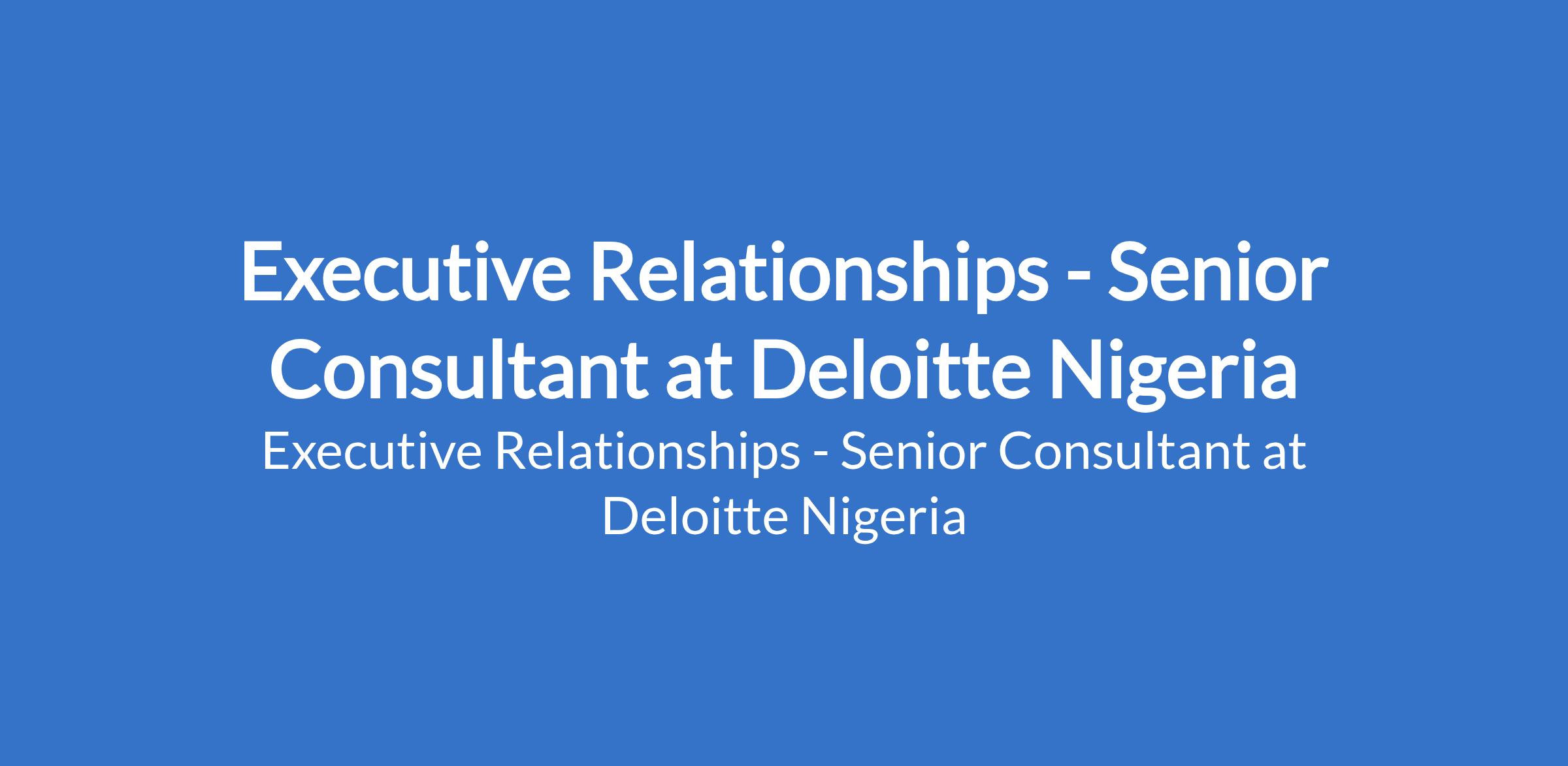 Deloitte Nigeria is recruiting to fill the position of: Executive Relationship - Senior Consultant. The position is located in Ozumba Mbadiwe Ave, Eti-Osa, Lagos State. Interested candidates should possess a Bachelor's Degree (B.A., B.Eng., B.Tech., etc.) or Higher National Diploma (HND) in Marketing orrelevant discipline with minimum of 3 years of work experience preferably within marketing at professional services firms.