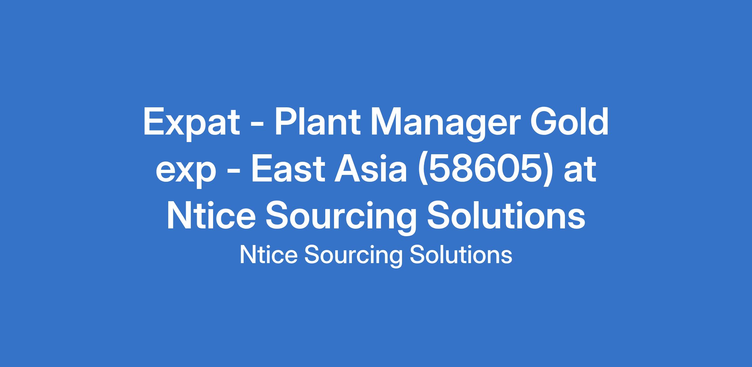 A Mining house based in East Asia is looking for an experienced Plant Manager with Gold Mining experience