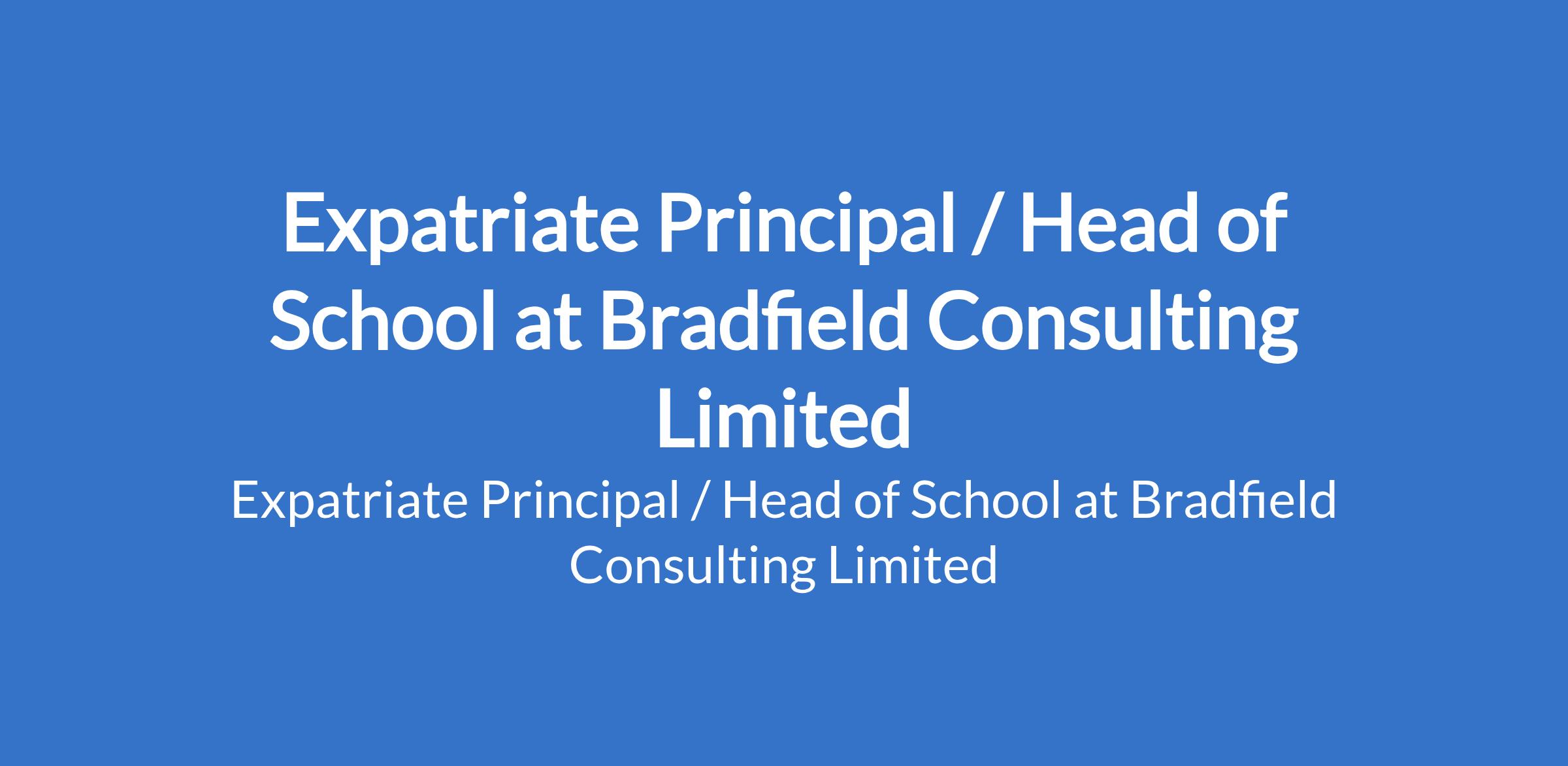 Bradfield Consulting Limited is recruiting to fill the position of: Expatriate Principal / Head of School. The position is located in Ikeja, Lagos State. Interested candidates should possess a First Degree, preferably B.Ed or its equivalent, from a reputable tertiary institution, Masters degree in educational management and planning or professional qualification in education or any other related certifications will be an advantage with ten (10) years cognate experience in an International School, and not less than Five (5) years in Management/Leadership position.