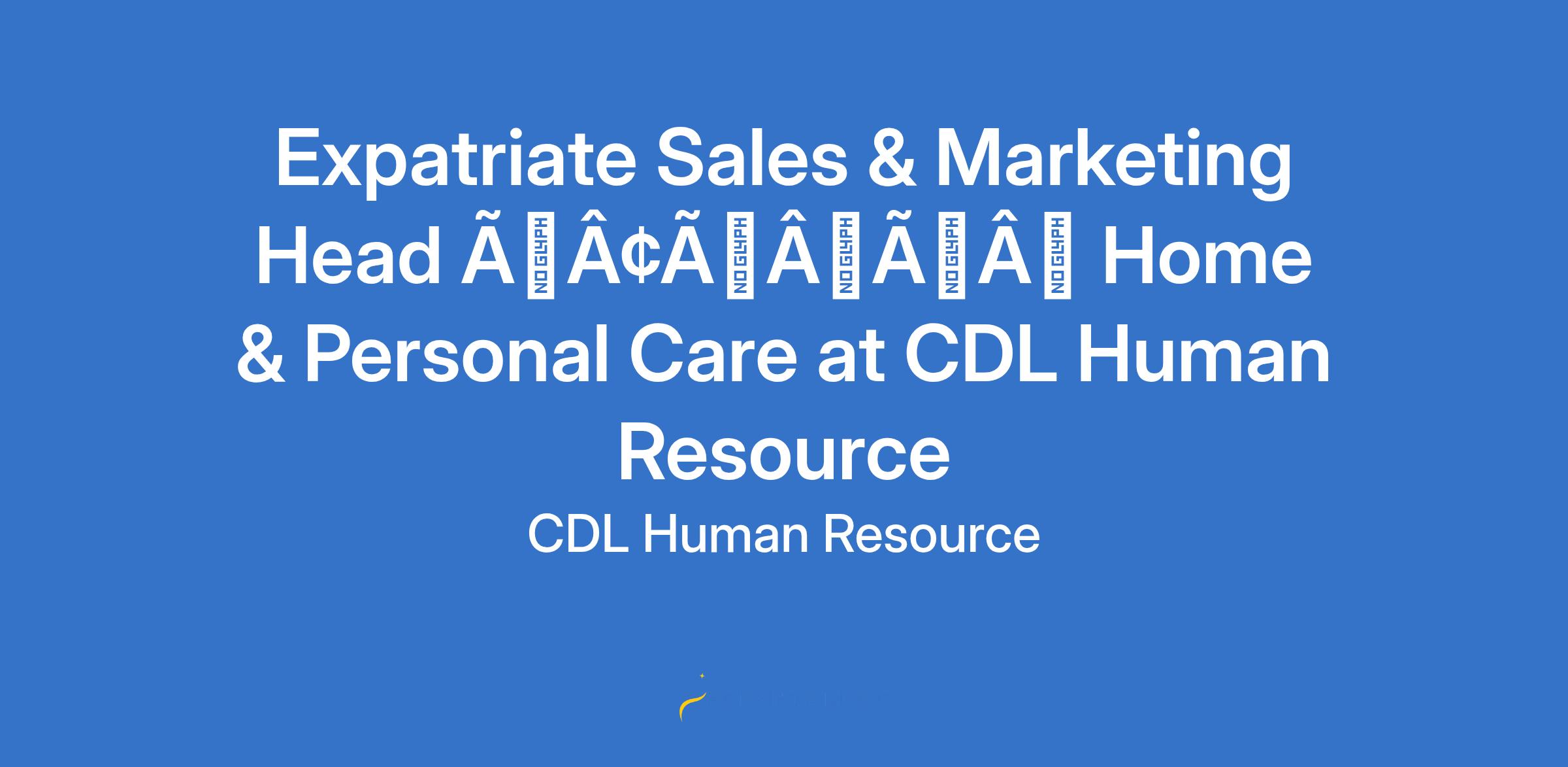 Expatriate Sales & Marketing Head âÃÂàHome & Personal Care at CDL Human Resource