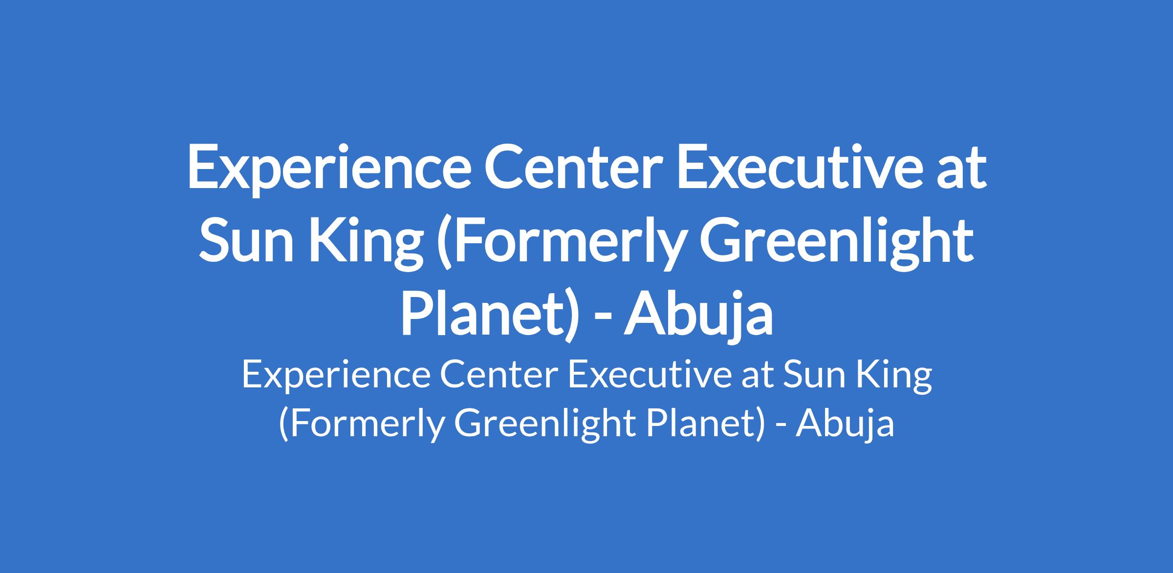 Sun King (Formerly Greenlight Planet) is recruiting to fill the position of: Experience Center Executive. The position is located in Abuja (FCT). Interested candidates should possess a Degree or its equivalent from a recognized institution in any related field with at least 1 year hands on experience in a related role.