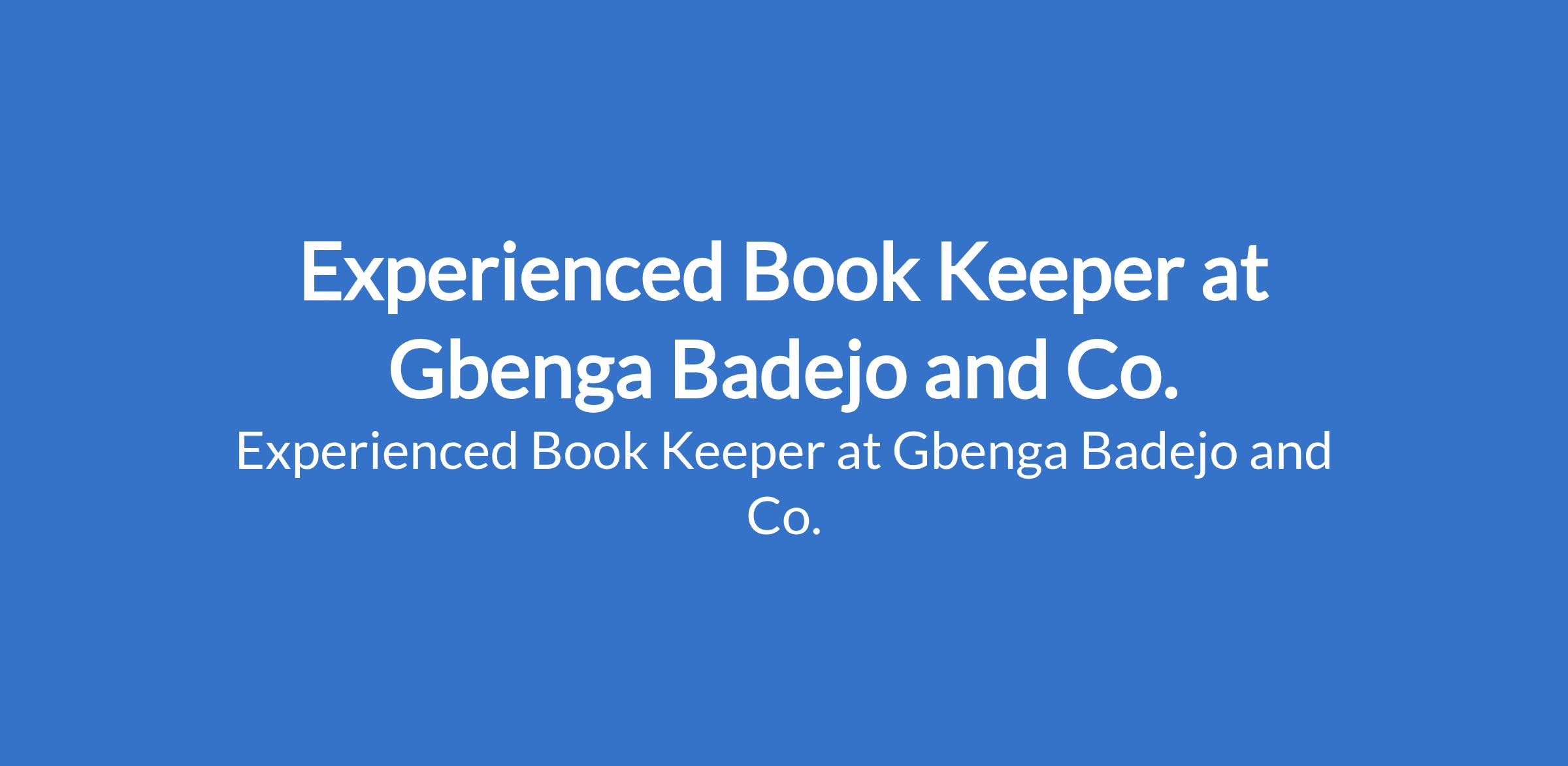 Gbenga Badejo and Co. is recruiting to fill the position of: Experienced Book Keeper. The position is located in Lagos Island, Lagos State. Interested candidates should possess minimum qualification of Bachelor's Degree in Accounting or related courses from a reputable educational institution with 2- 3 years in an experienced Book Keeping role.
