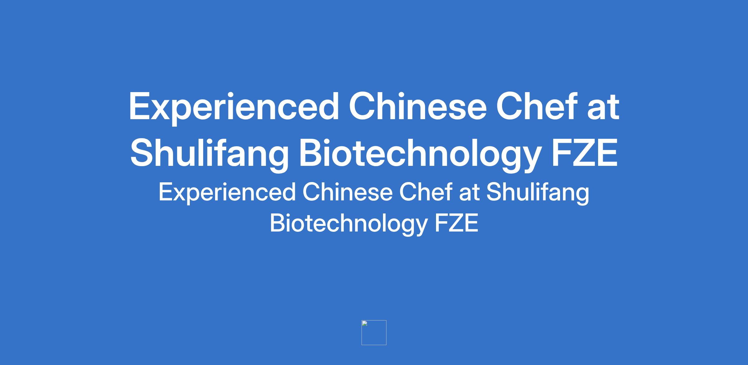 Experienced Chinese Chef at Shulifang Biotechnology FZE