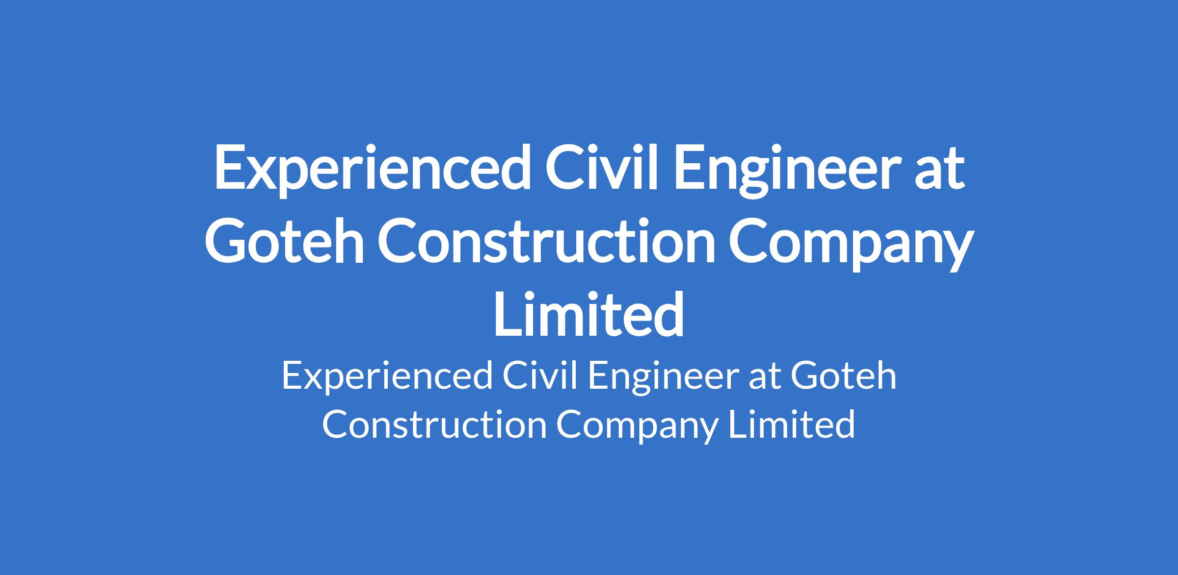 Goteh Construction Company Limited is recruiting to fill the position of: Experienced Civil Engineer. The position is located in Port Harcourt, Rivers State. Interested candidates should possess a First Degree or Masters from a recognized University in Civil Engineering with a minimum of 5 years post NYSC experience in construction and project execution.