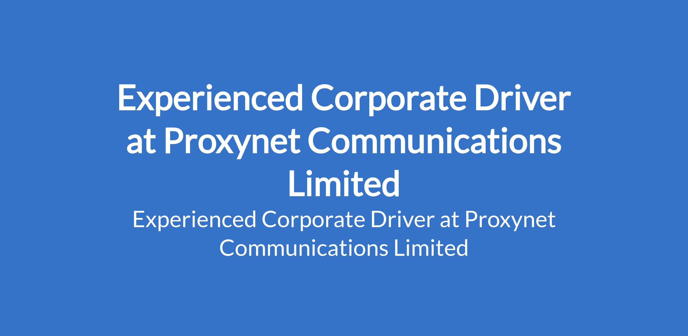 Proxynet Communications Limited is recruiting to fill the position of: Experienced Corporate Driver. The position is located in Galadima, Gwarinpa - Abuja (FCT). Interested candidates should possess an SSCE qualification with 5 - 7 years of relevant work experience, must have a valid driver's license, and must live close to Gwarinpa axis.