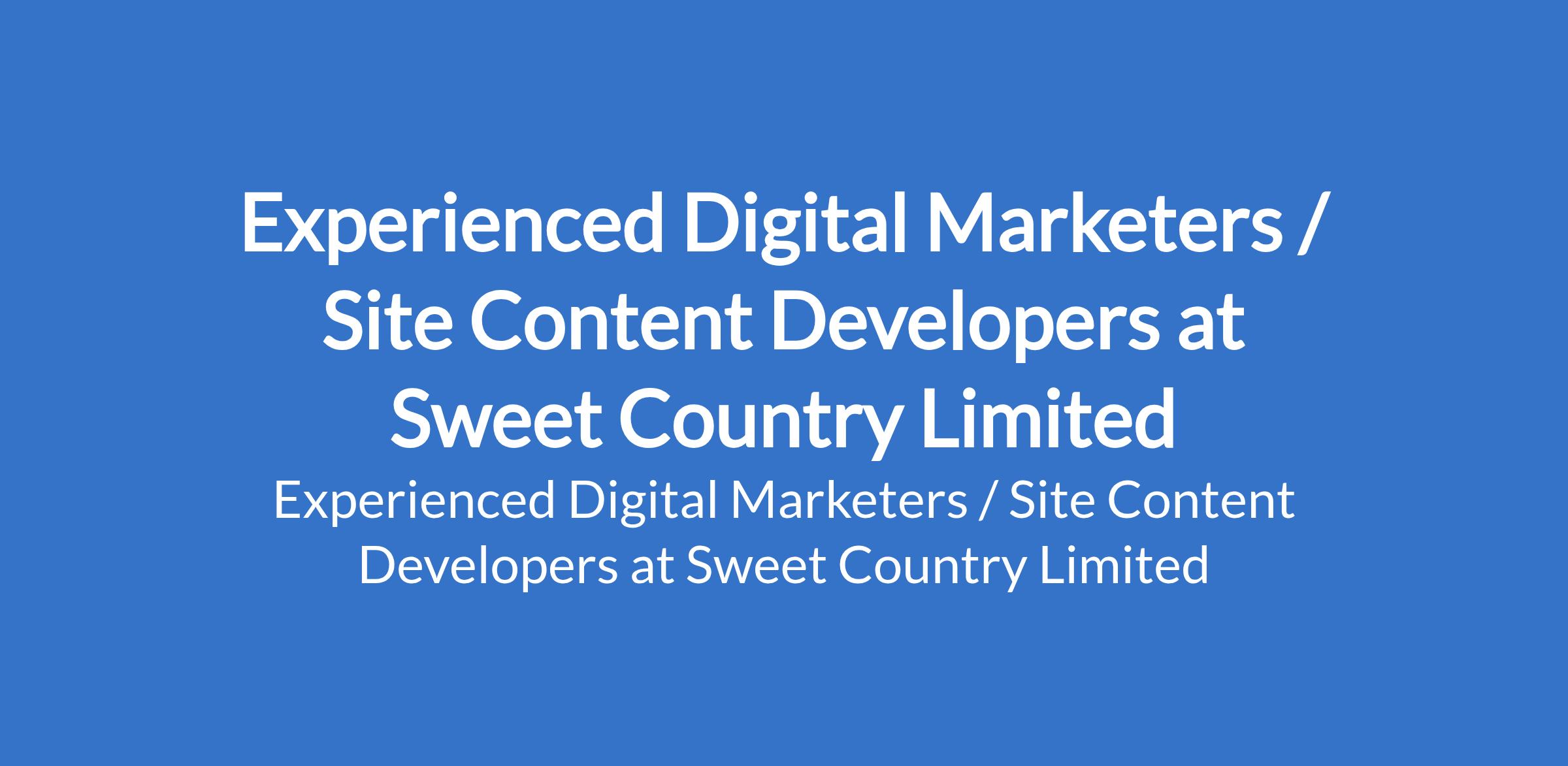 Experienced Digital Marketers / Site Content Developers at Sweet Country Limited