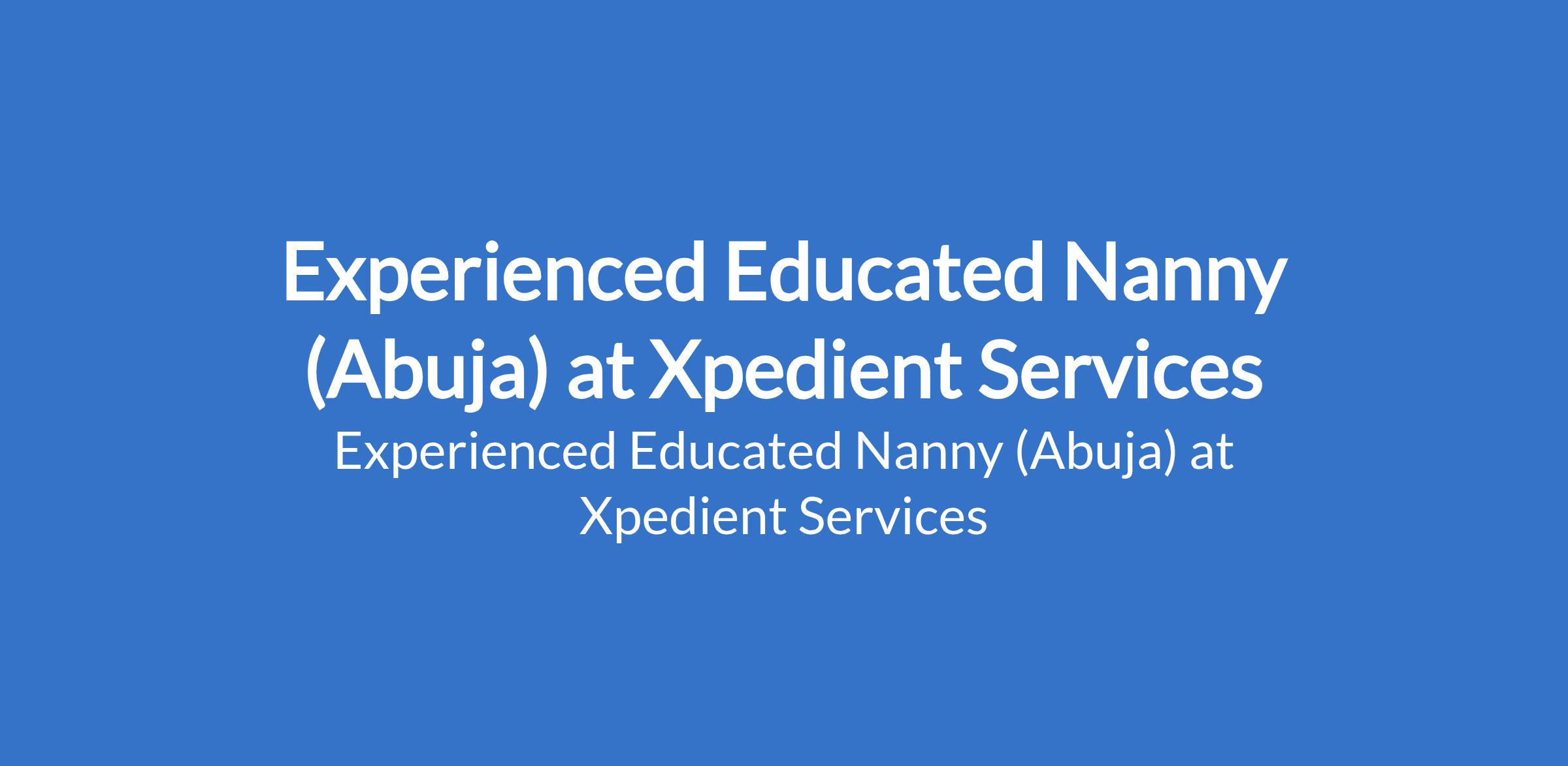 Xpedient Services is recruiting to fill the position of: Experienced Educated Nanny. The position is located in Abuja. Salary: N200,000 - N250,000 monthly. Interested candidates should possess minimum of a Diploma or Bachelors Degree preferred; background in Education, Child Development, or related field is an advantage) with minimum of 5 years proven experience working as a professional nanny or childcare provider within a private household.