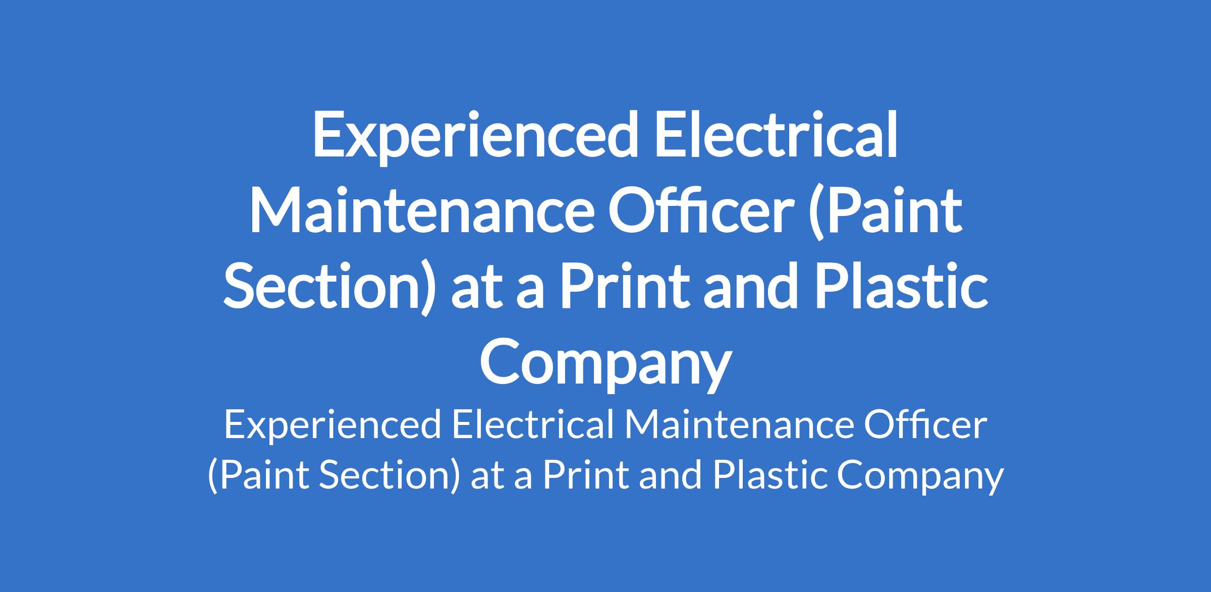 Experienced Electrical Maintenance Officer (Paint Section) at a Print and Plastic Company