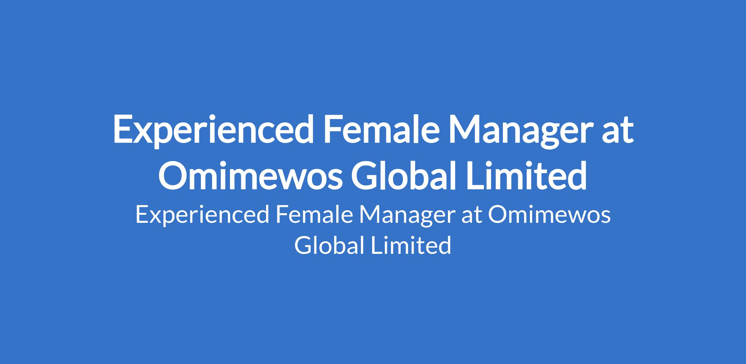 Omimewos Global Limited is recruiting to fill the position of: Experienced Female Manager. The position is located in Ota, Ogun State. Interested candidates should possess relevant qualifications and must have managed two to three or more companies before.
