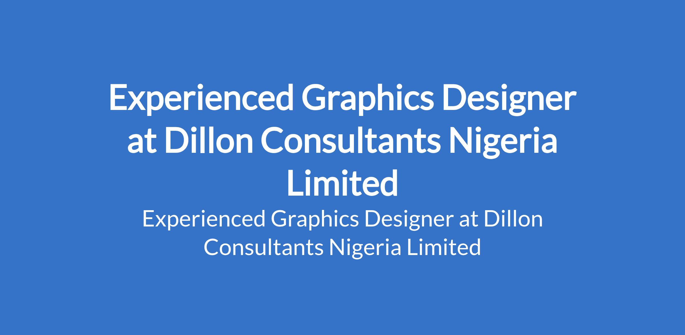Dillon Consultants Nigeria Limited is recruiting to fill the position of: Experienced Graphics Designer. The position is located in Lekki, Lagos State. Interested candidates should possess relevant qualifications with experience.