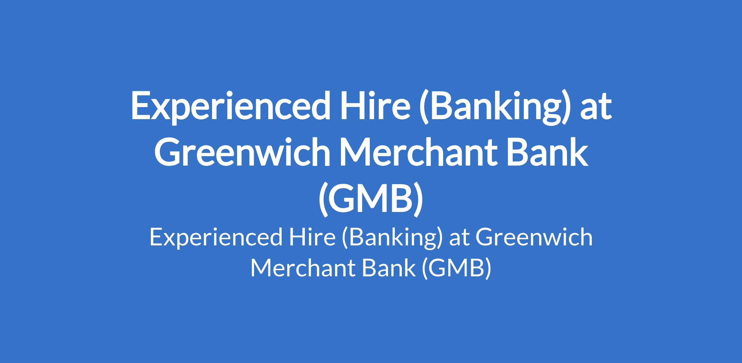 Experienced Hire (Banking) at Greenwich Merchant Bank (GMB)