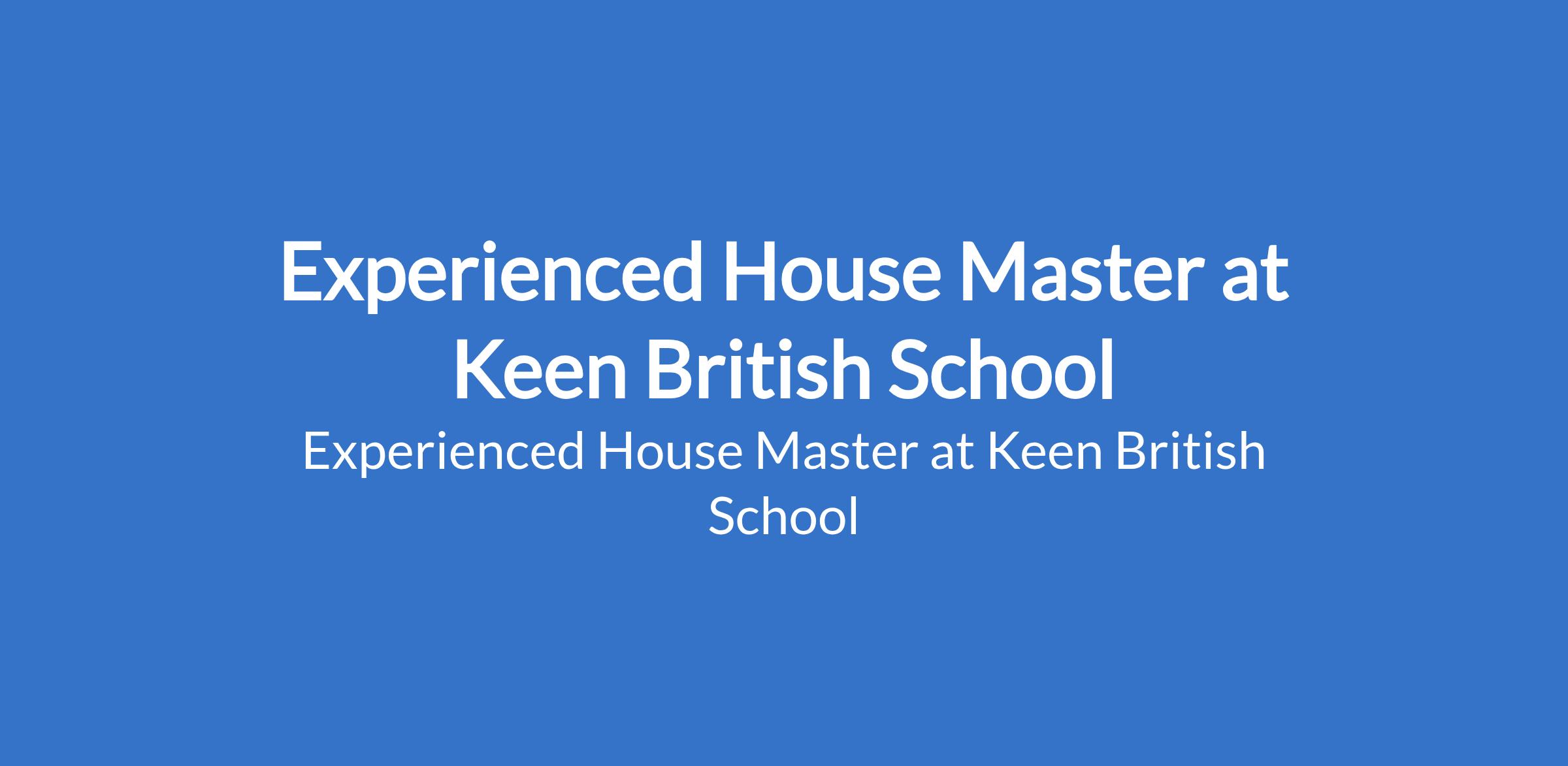 Experienced House Master at Keen British School