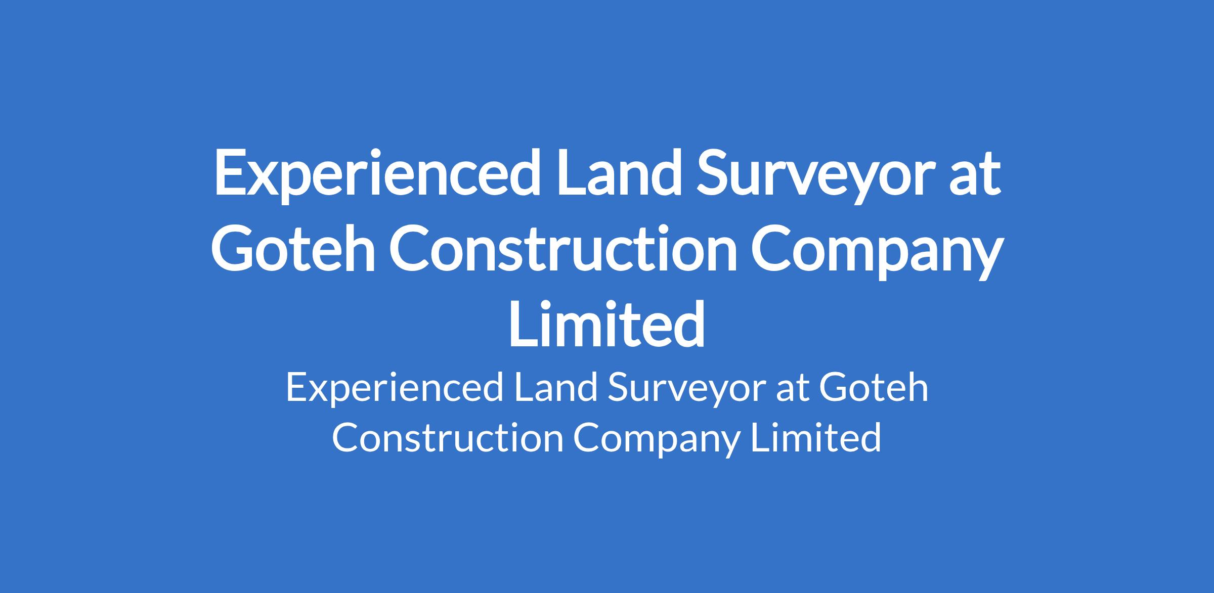 Goteh Construction Company Limited is recruiting to fill the position of: Experienced Land Surveyor. The position is located in Port Harcourt, Rivers, State. Interested candidates should possess a First Degree from a recognized University in Land Surveying with 5 7 years post NYSC experience in conducting land surveys/in the field.