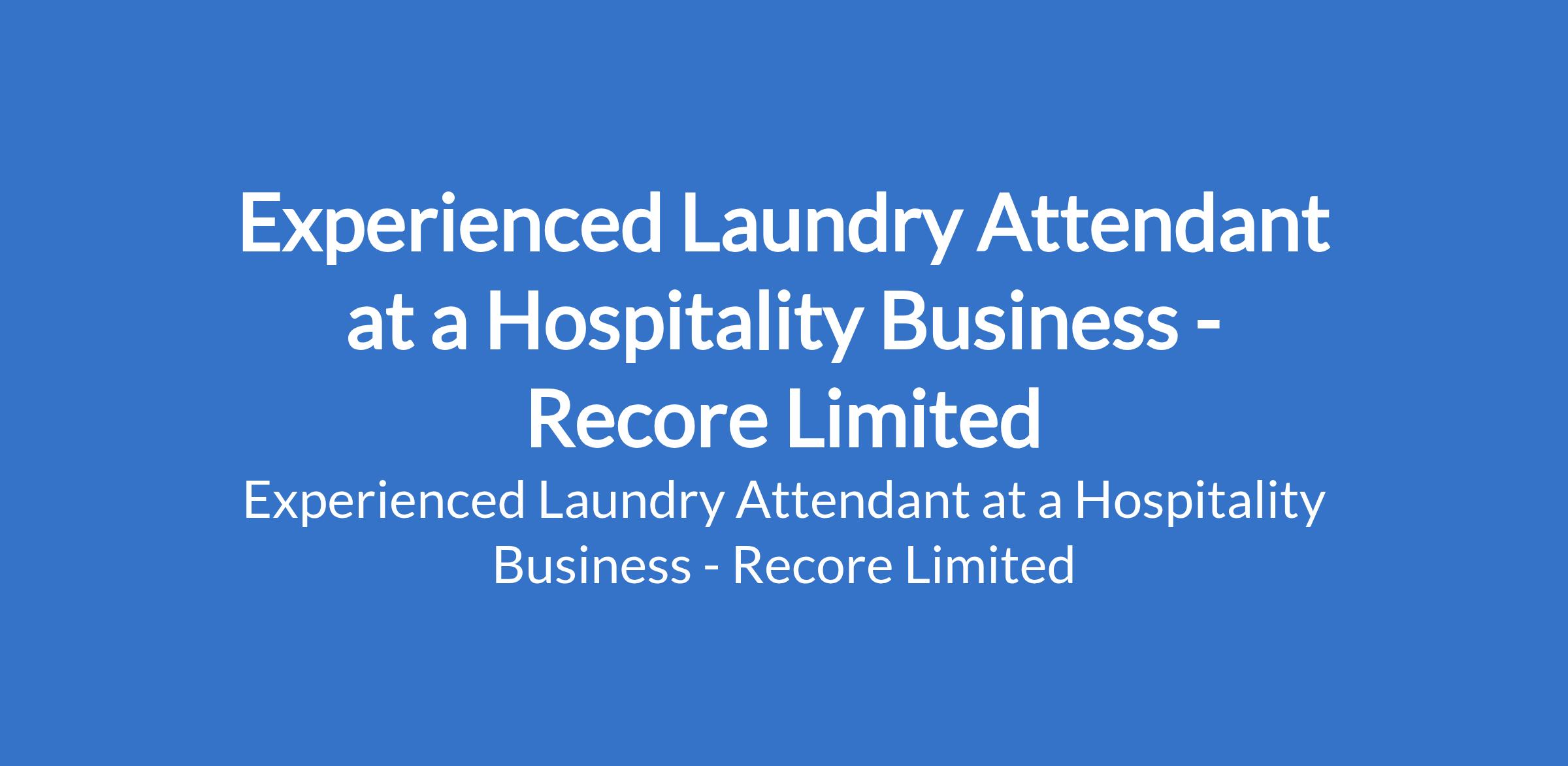 Recore Limited - Our client, a hospitality business is recruiting to fill the position of: Experienced Laundry Attendant. The position is located in Surulere, Lagos State. Salary: N70,000 - N100,000 monthly. Interested candidates should possess an SSCE / GCE / NECO qualification with 2 - 10 years experience.