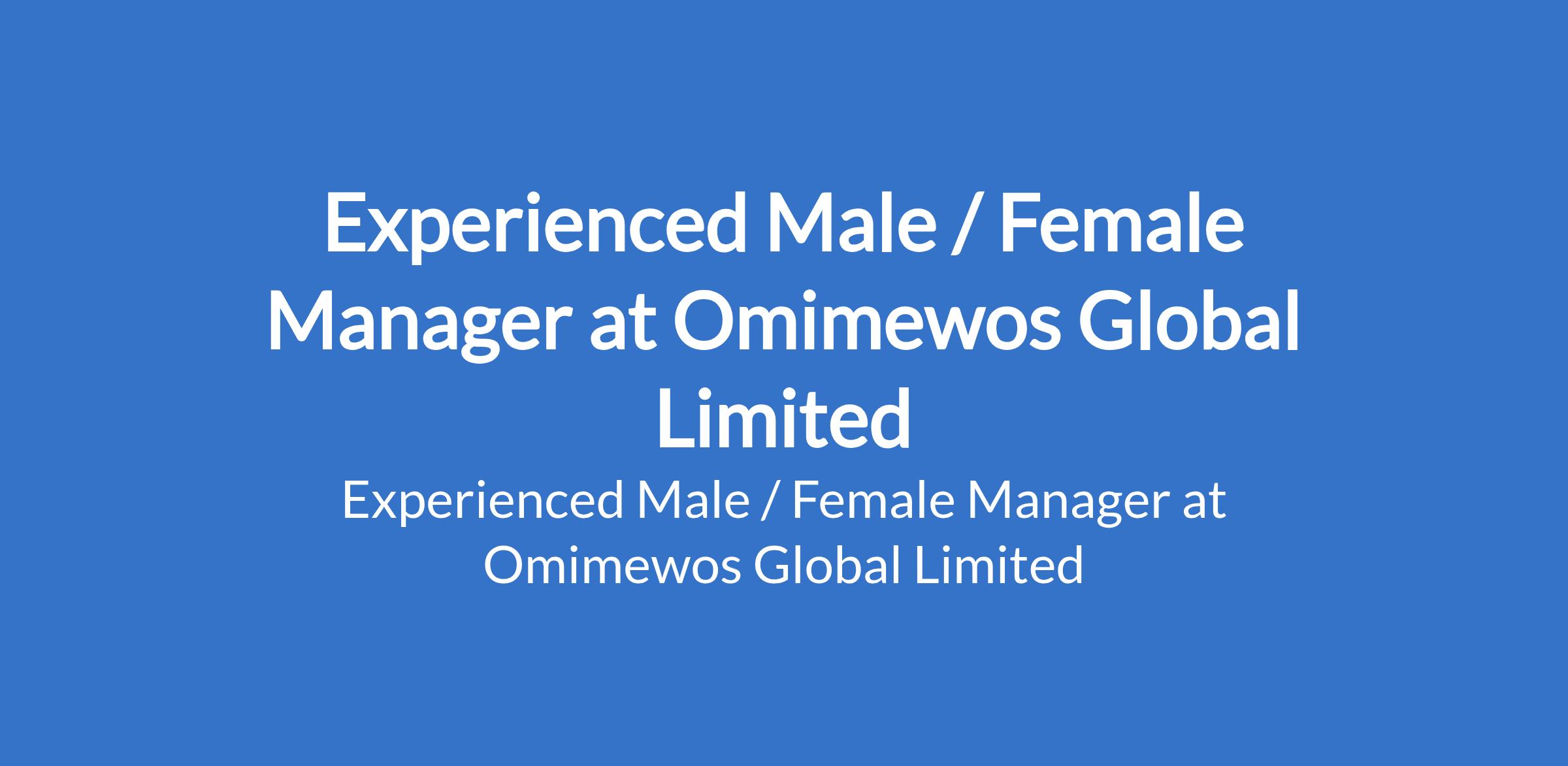 Omimewos Global Limited is recruiting to fill the position of: Experienced Male / Female Manager. The position is located in Ota, Ogun State. Interested candidates should possess relevant qualifications.