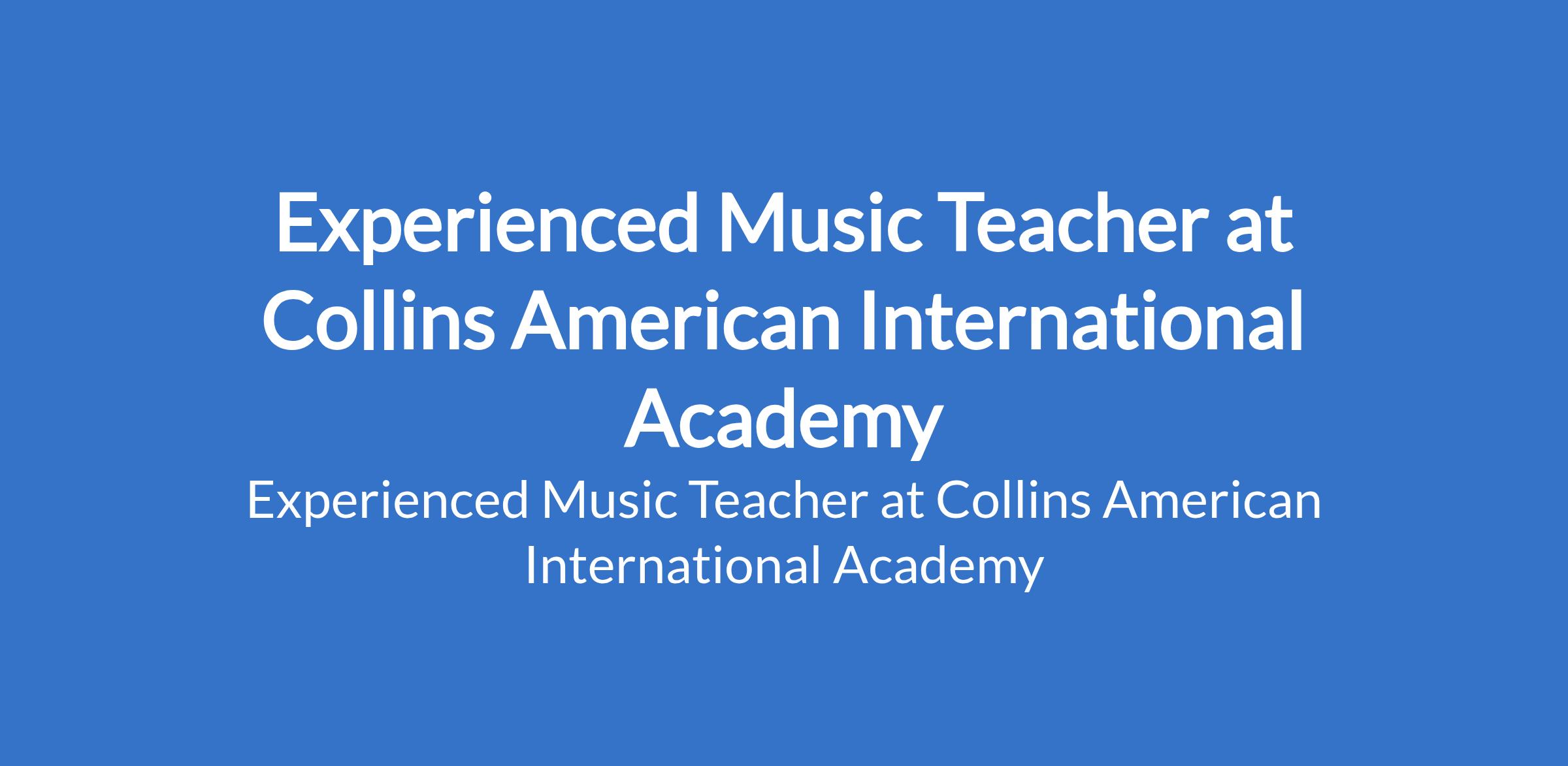 Collins American International Academy is recruiting to fill the position of: Experienced Music Teacher. The position is located in Owerri / Irete, Imo State. Interested candidates should possess Bachelors Degree in Music / Music Education with 35 years teaching experience