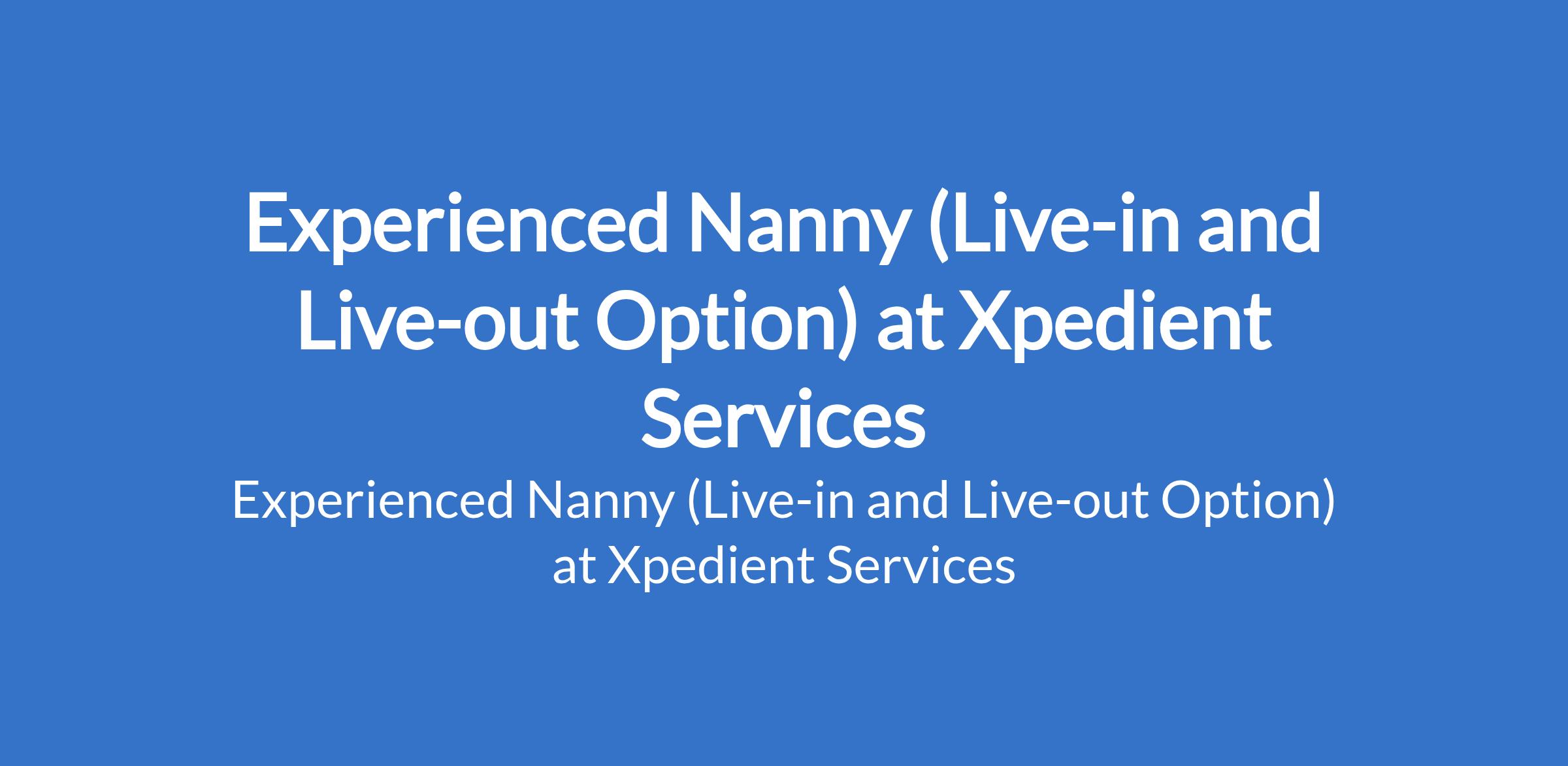 Xpedient Services is recruiting to fill the position of: Experienced Nanny (Live-in and Live-out Option). The position is located in Island, Lagos State. Salary: N200,000 - N250,000 per month. Interested candidates should possess relevant qualifications with proven experience working as a nanny or childcare provider in a private household, and must reside on the Island.