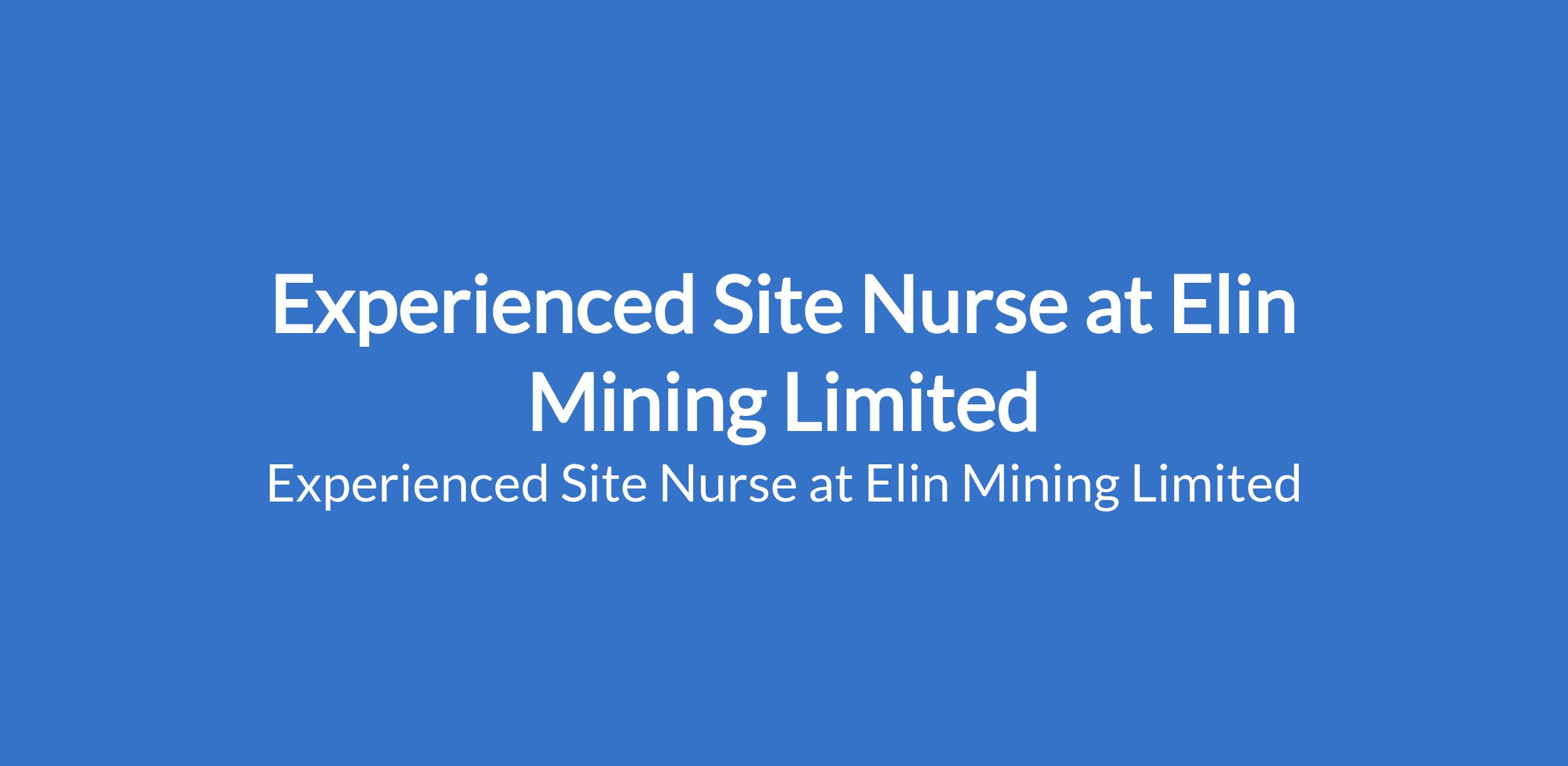 Experienced Site Nurse at Elin Mining Limited