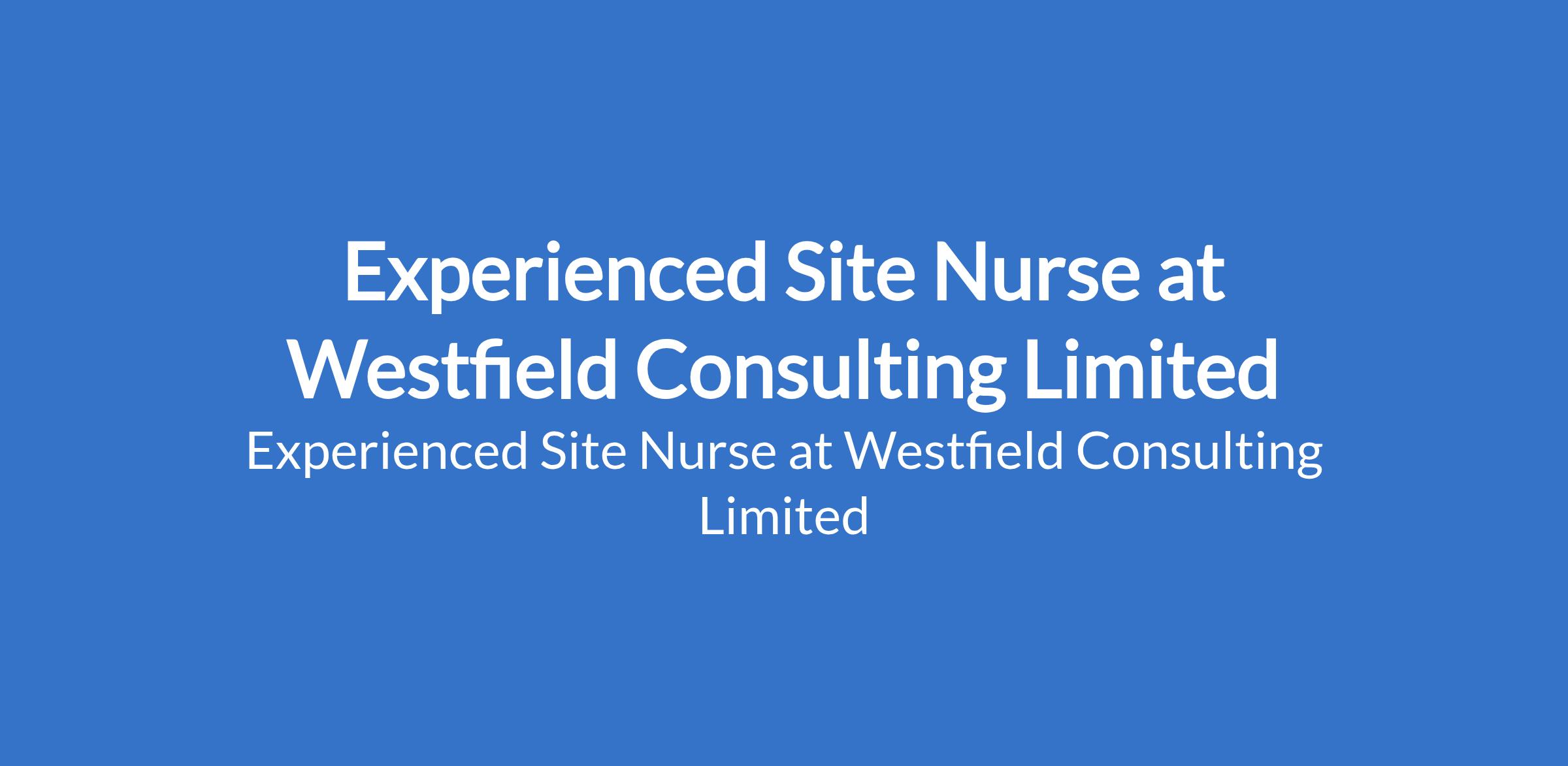 Experienced Site Nurse at Westfield Consulting Limited