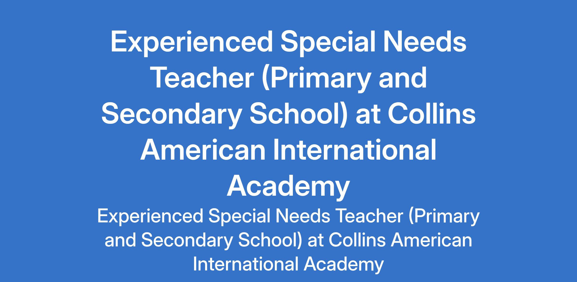 Collins American International Academy is recruiting to fill the position of: Experienced Special Needs Teacher (Primary and Secondary School). The position is located in Owerri, Imo State. Interested candidates should possess a Bachelors Degree in Education, Special Education, or related field (Masters preferred) and Teaching qualification/certification (PGCE, B.Ed., or equivalent with Special Needs specialization) with 13 years teaching experience in Early Years and/or Secondary education.