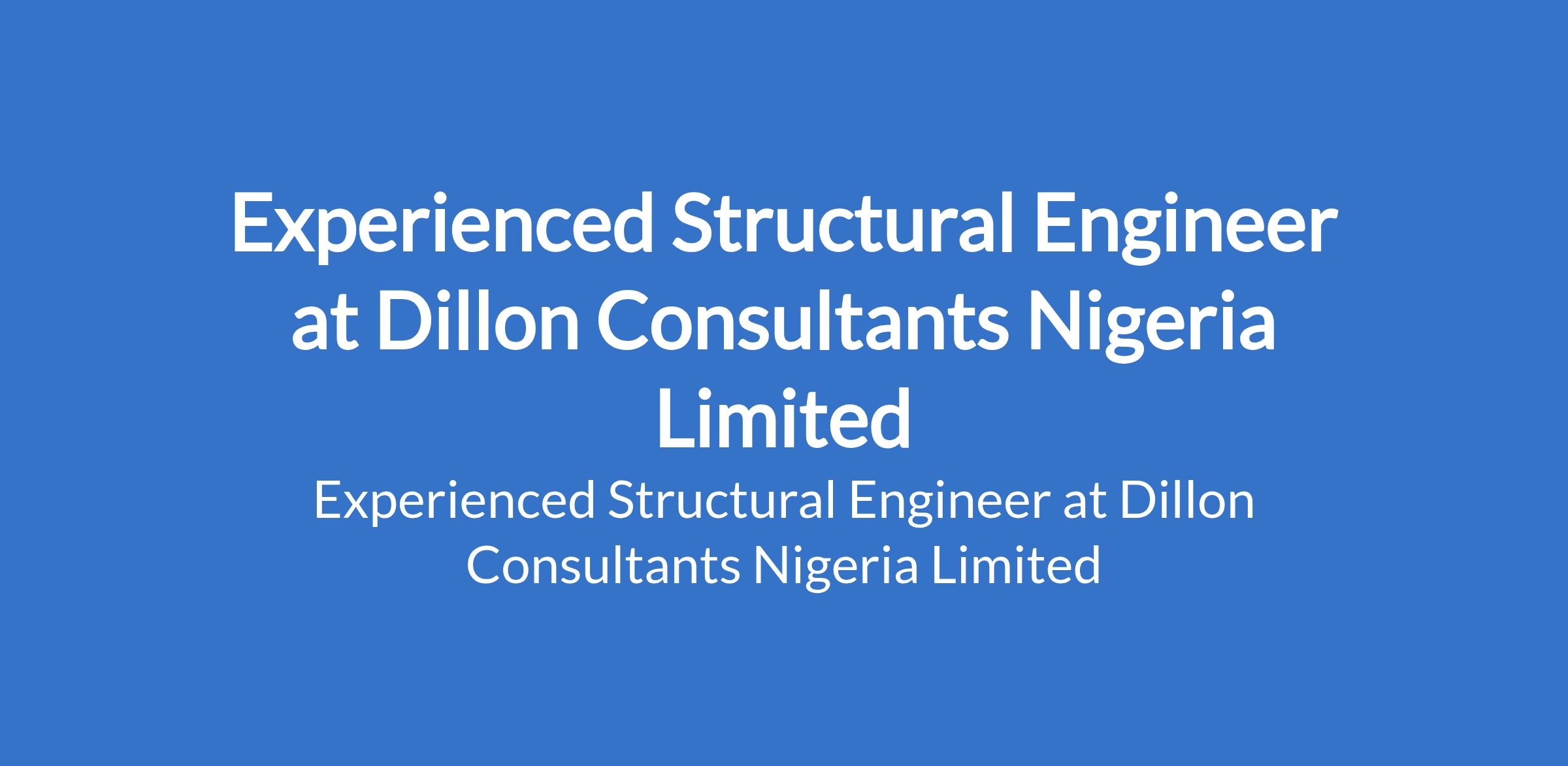Dillon Consultants Nigeria Limited is recruiting to fill the position of: Experienced Structural Engineer. The position is located in Lekki, Lagos State. Interested candidates should possess relevant qualifications with experience.