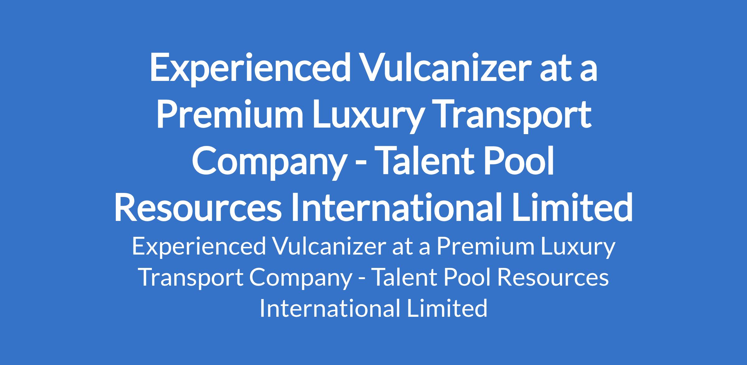 Talent Pool Resources International Limited - Our client, a premium luxury transport company is recruiting to fill the position of: Experienced Vulcanizer. The position is located in Lagos Mainland, Lagos State. Salary: N200,000 N250,000 per month. Interested candidates should possess relevant qualifications with 4 - 6 years of experience as a vulcanizer or tyre technician.