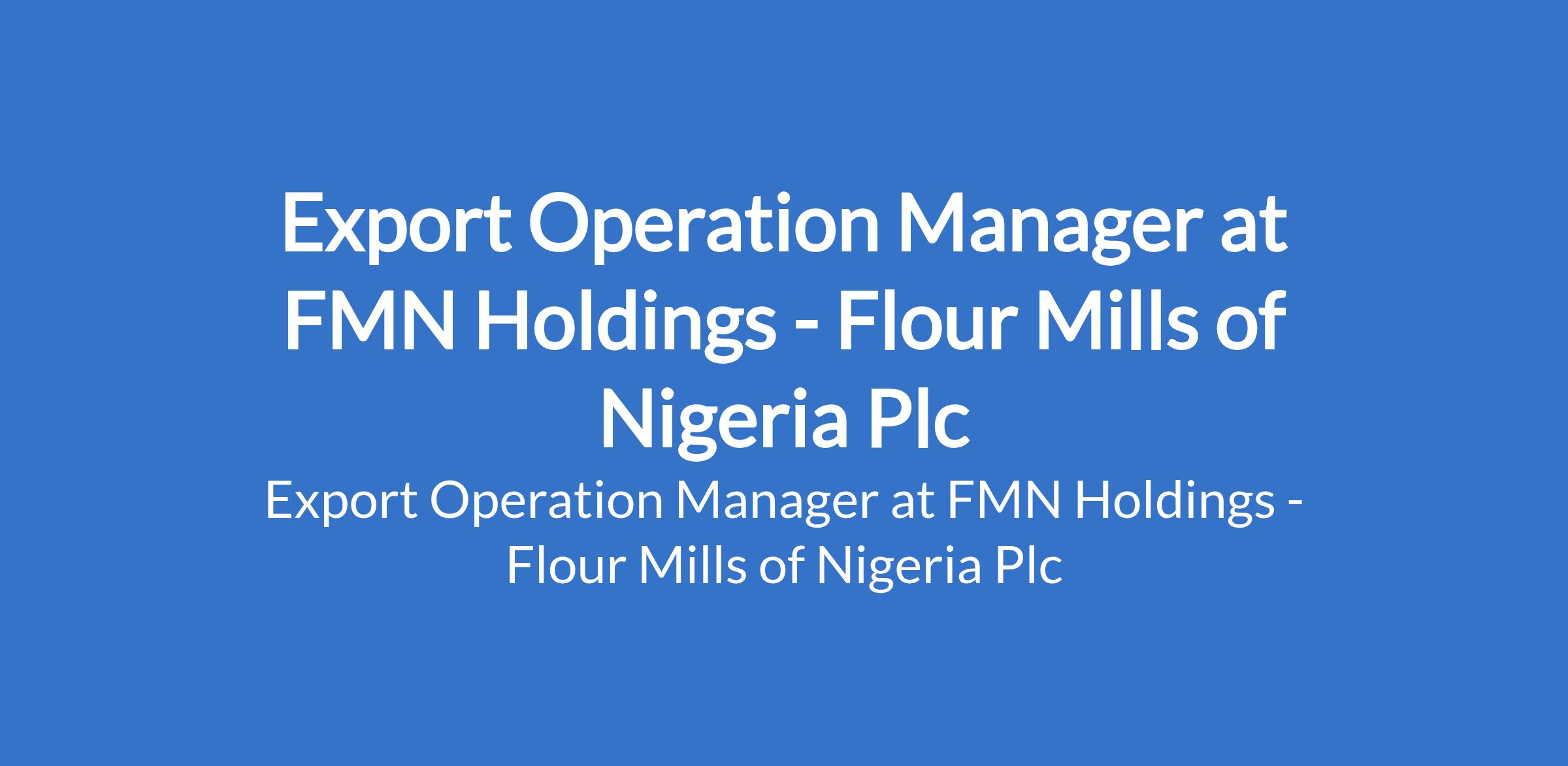 FMN Holdings, a subsidiary of Flour Mills of Nigeria Plc is recruiting to fill the position of: Export Operation Manager. Interested candidates should possess a Bachelors Degree in Logistics, Supply Chain Management, or a related discipline with a minimum of five (5) years experience in logistics, supply chain, or export operations.