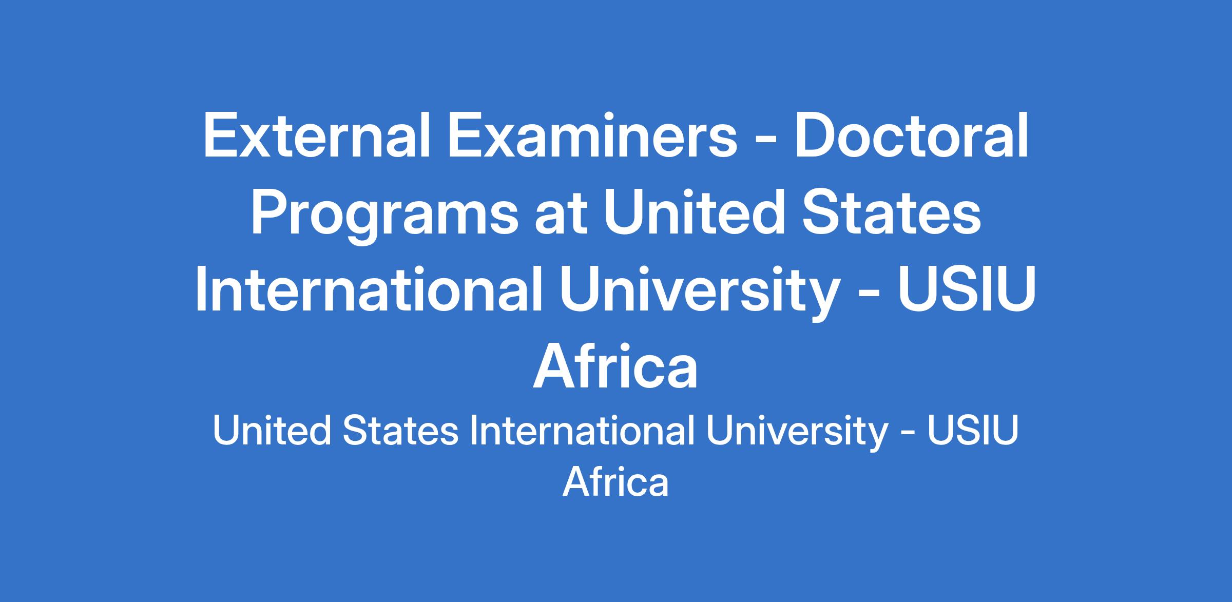 USIU-Africa invites applications from qualified scholars to serve as External Examiners for the above-named doctoral programs. This call aligns with the University's commitment to maintaining the highest standards of research quality, academic integrity, and global benchmarking in postgraduate education.