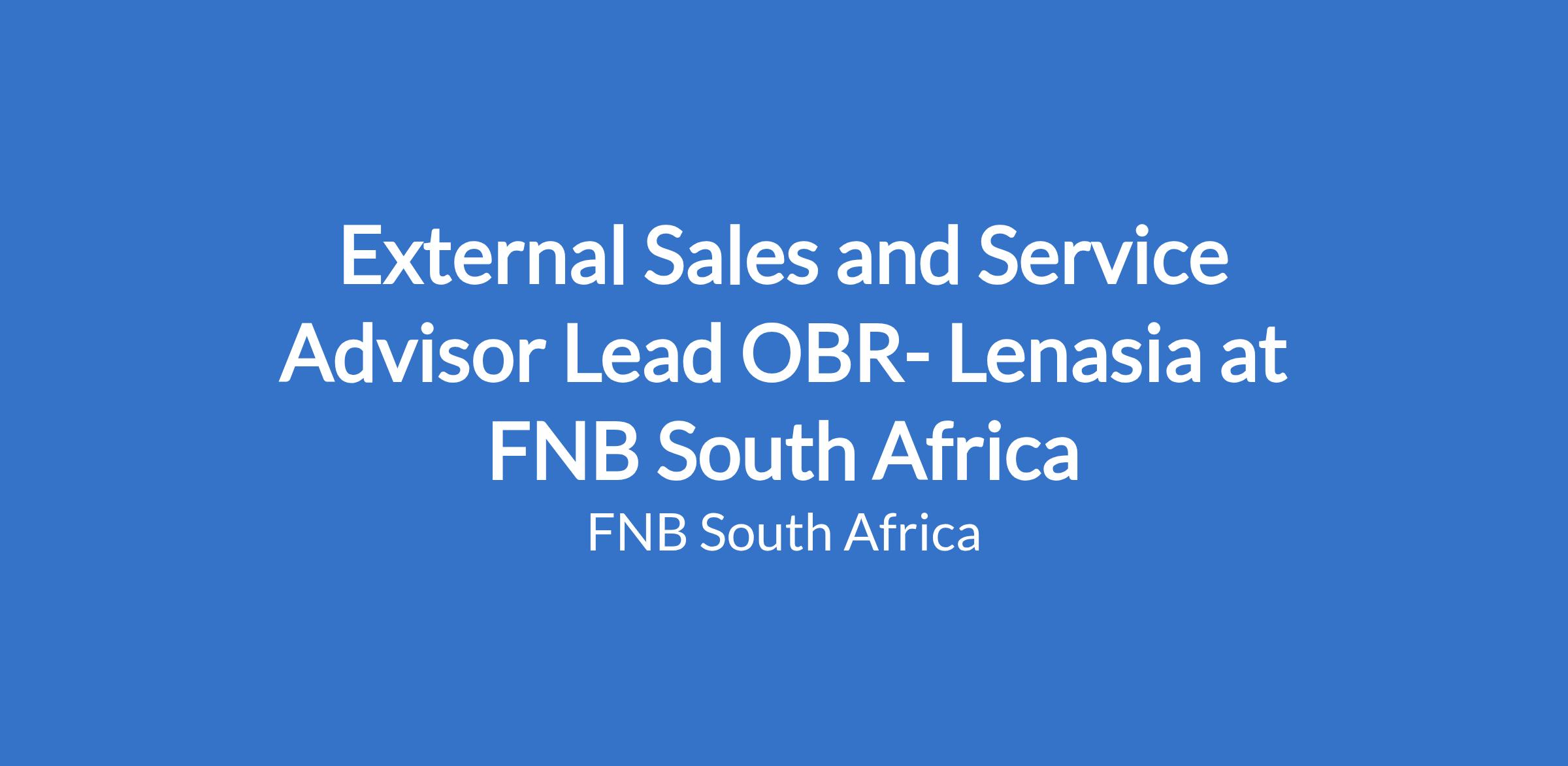 External Sales and Service Advisor Lead OBR- Lenasia at FNB South Africa