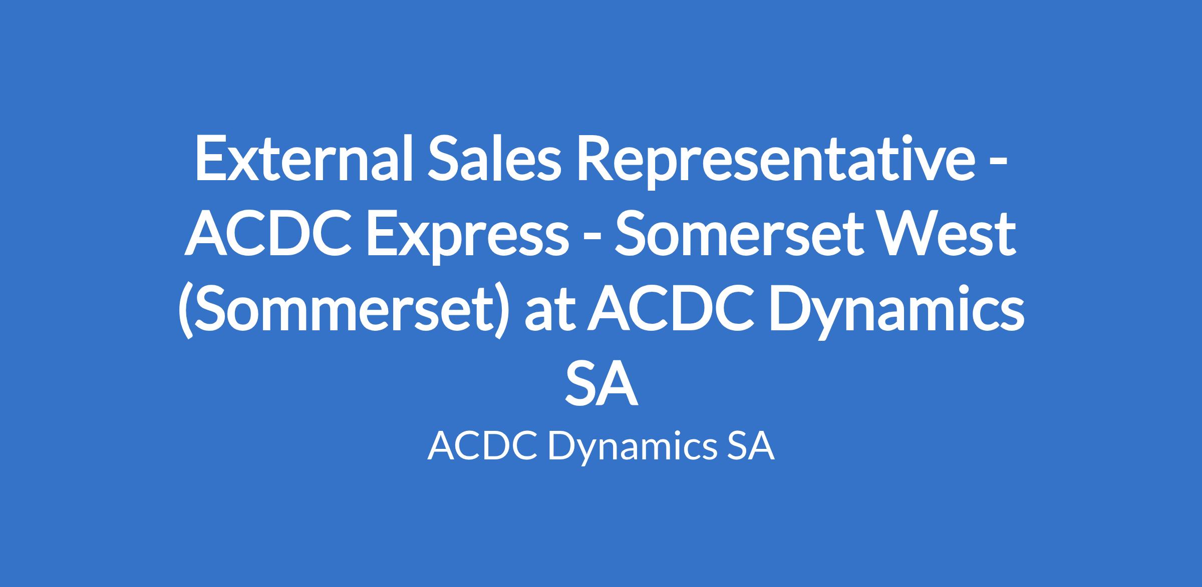 External Sales Representative - ACDC Express - Somerset West (Sommerset) at ACDC Dynamics SA