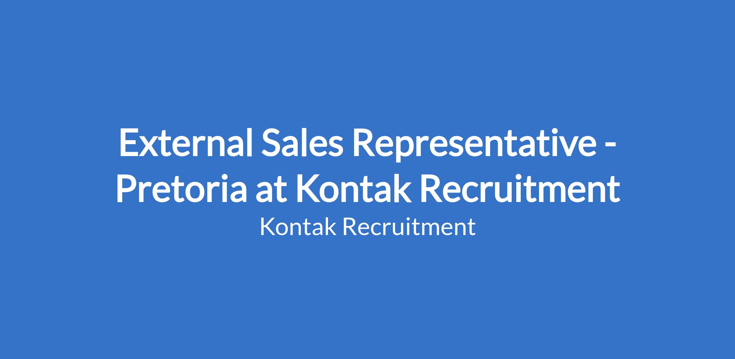 External Sales Representative - Pretoria at Kontak Recruitment