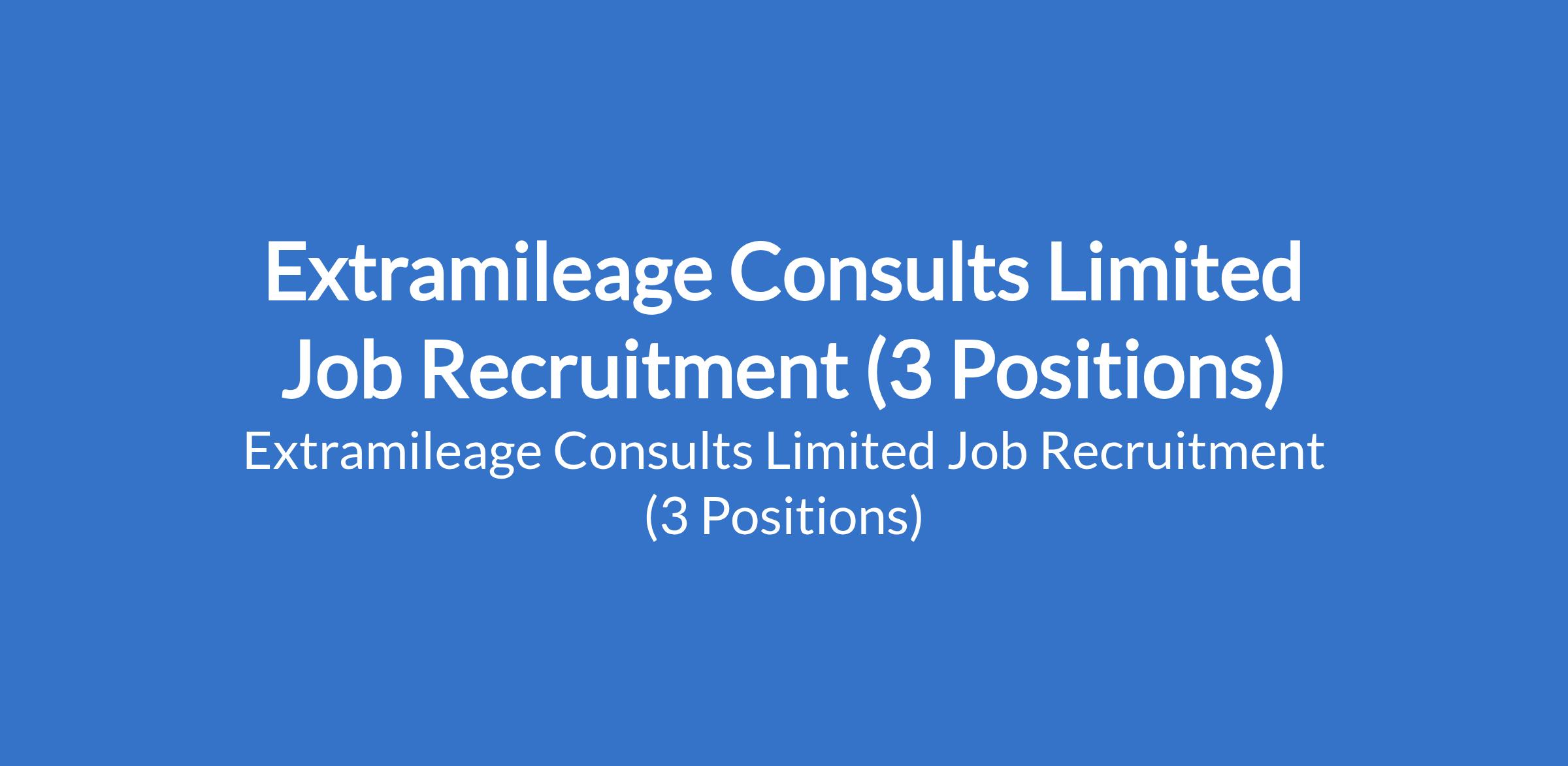 Extramileage Consults Limited Job Recruitment (3 Positions)