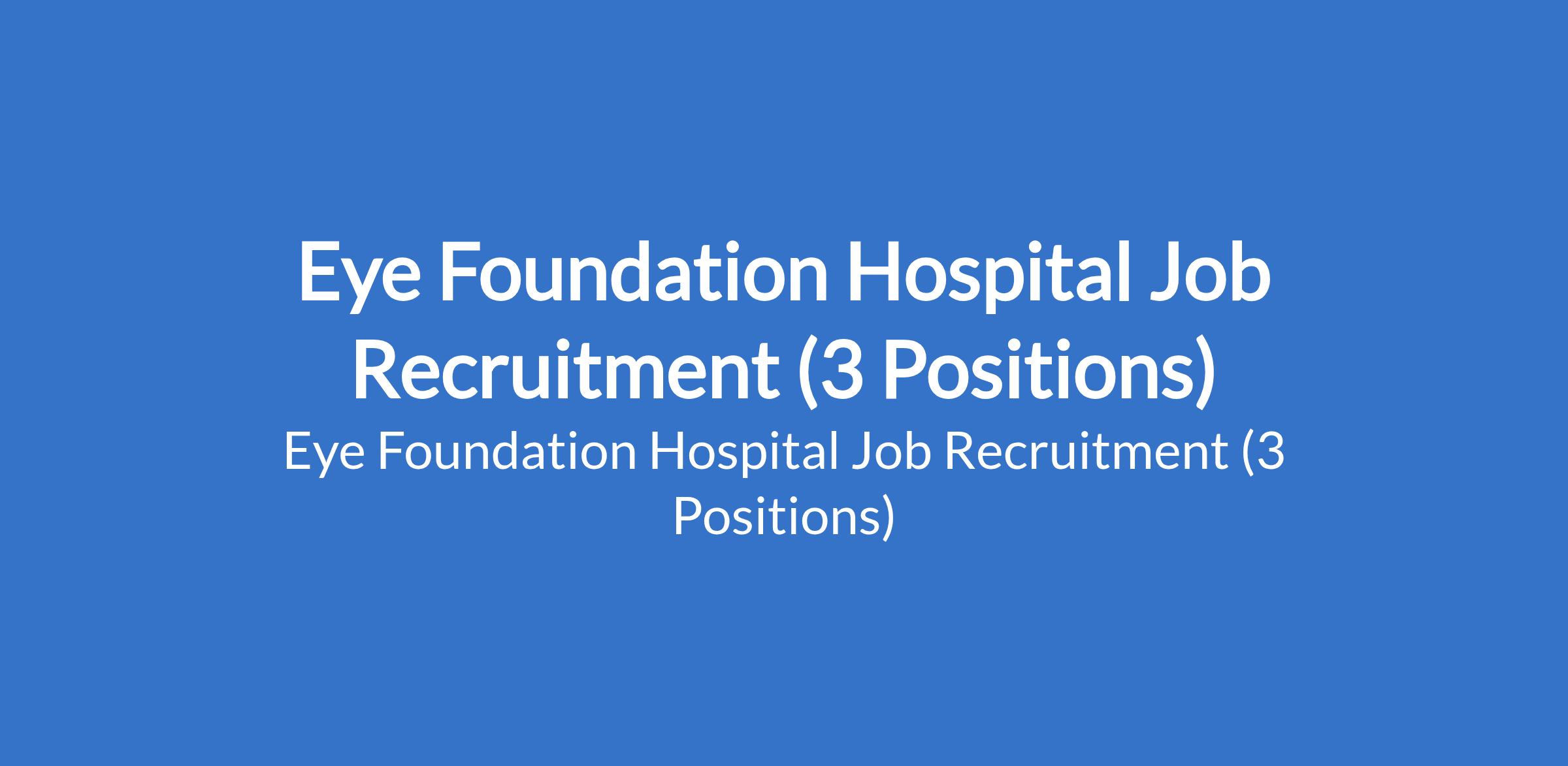Eye Foundation Hospital Job Recruitment (3 Positions)