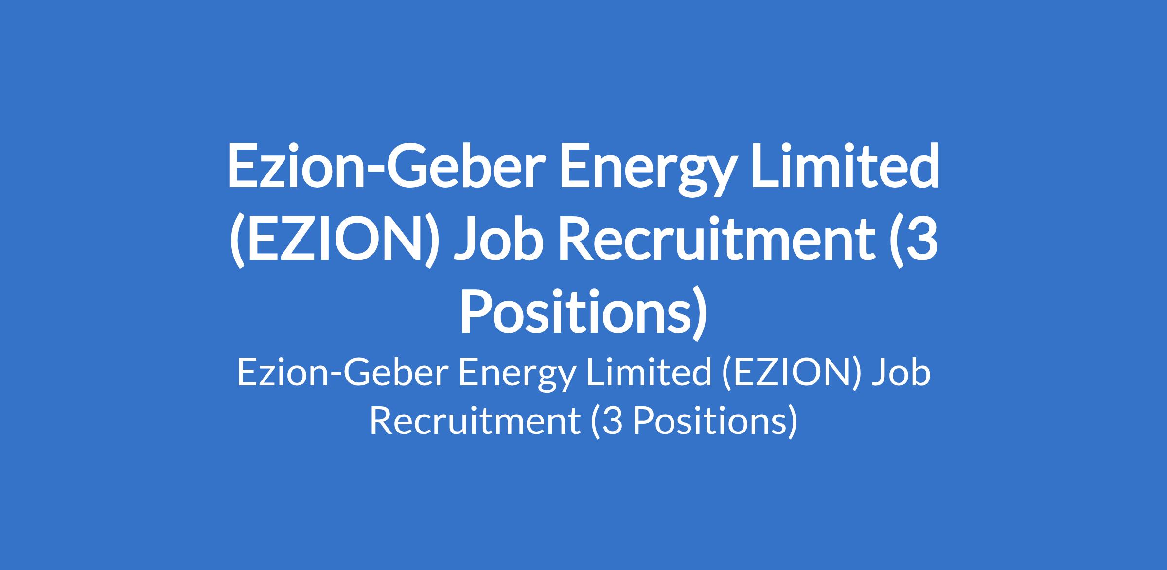 Ezion-Geber Energy Limited (EZION) Job Recruitment (3 Positions)