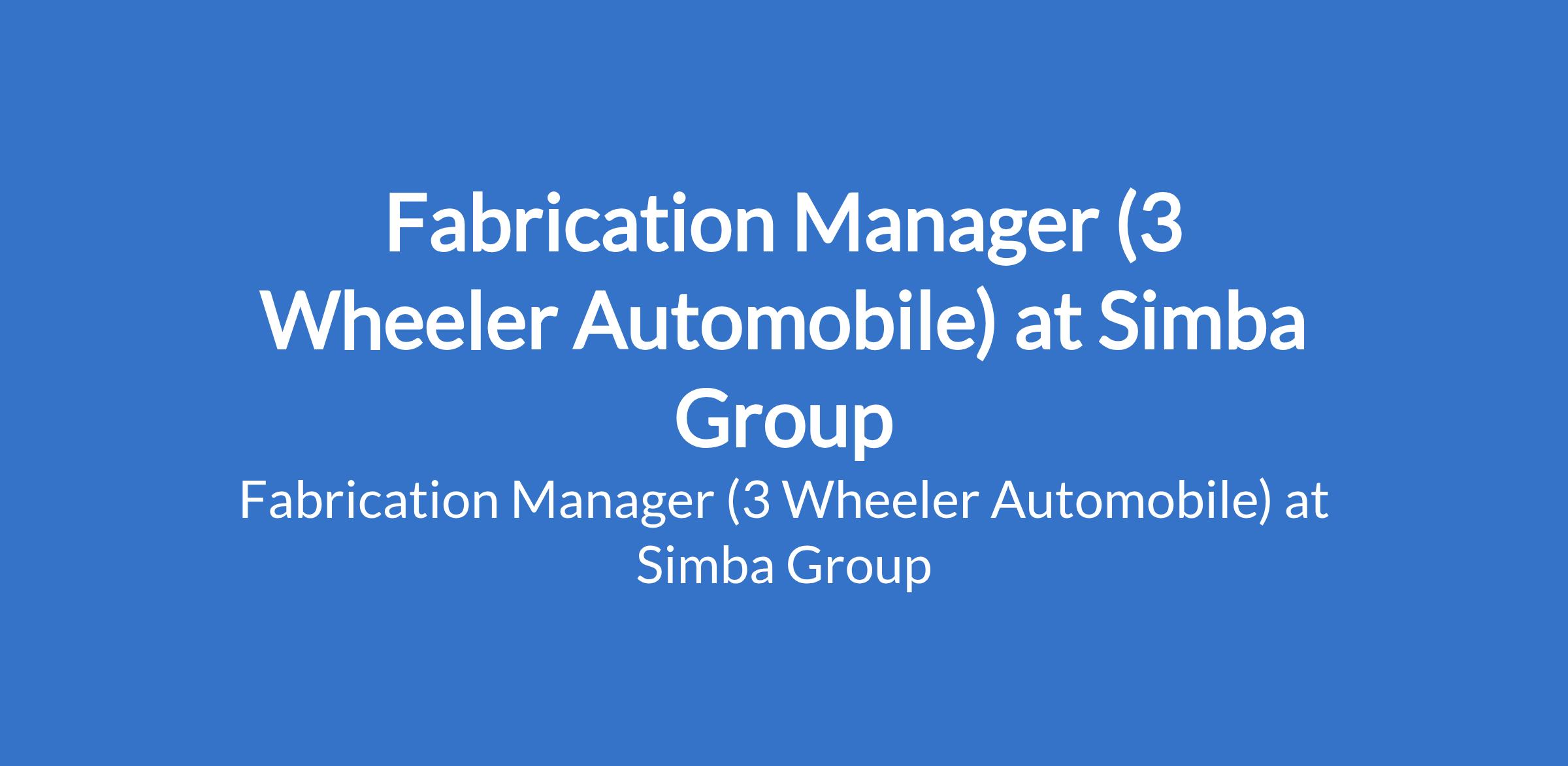 Simba Group is recruiting to fill the position of: Fabrication Manager (3 Wheeler Automobile). The position is located in Lagos State. Interested candidates should possess a Bachelors Degree / Diploma in Mechanical / Automobile Engineering or related discipline with 610 years of relevant experience in fabrication & body shop operations, ideally in a 3 -wheeler or light commercial vehicle segment.