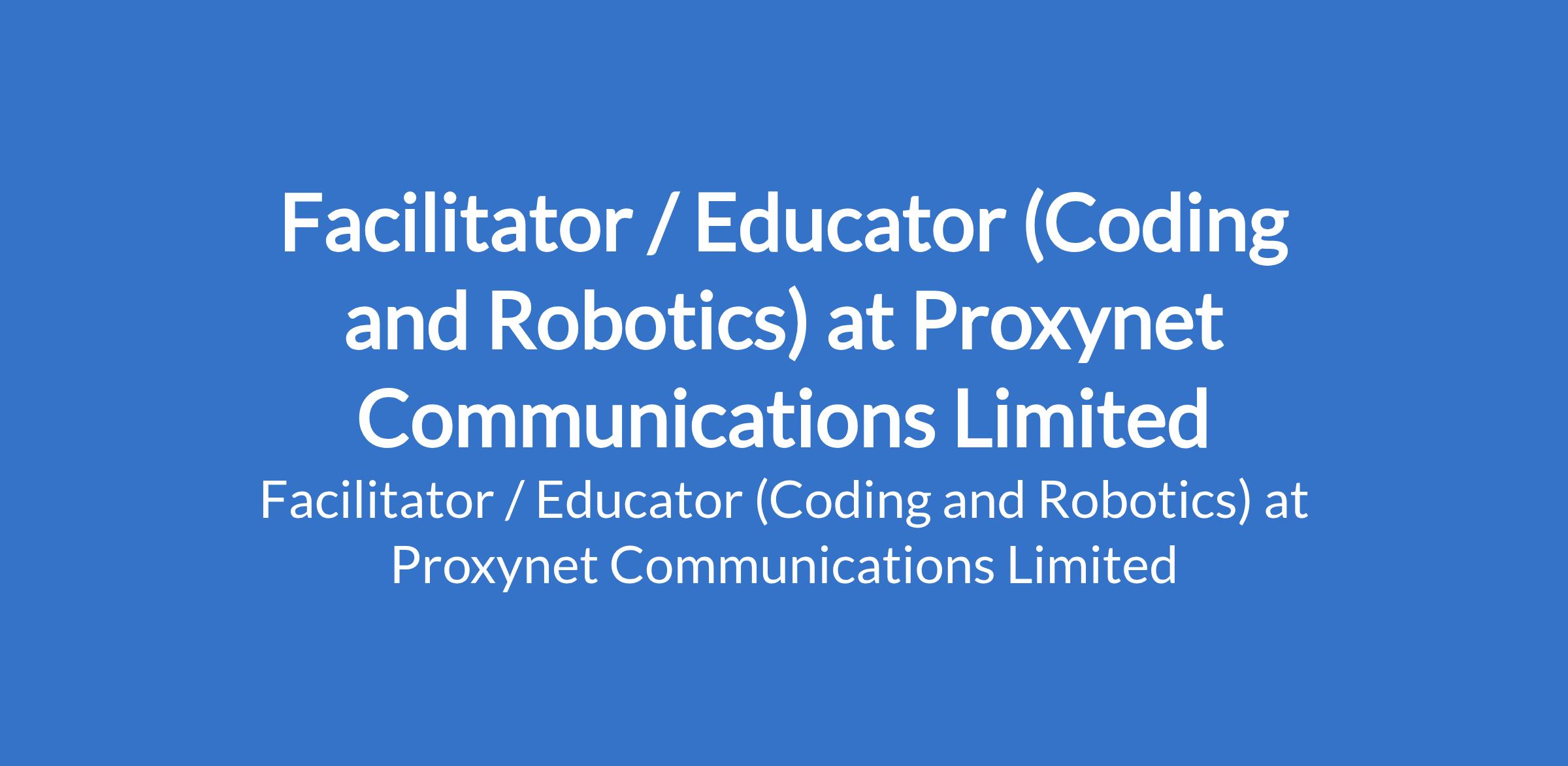 Proxynet Communications Limited is recruiting to fill the position of: Facilitator / Educator (Coding and Robotics). The position is located in Ikeja, Lagos State. Interested candidates should be a graduate of Computer Science / Information and Communication Technology / Computer Engineering / Education Technology.