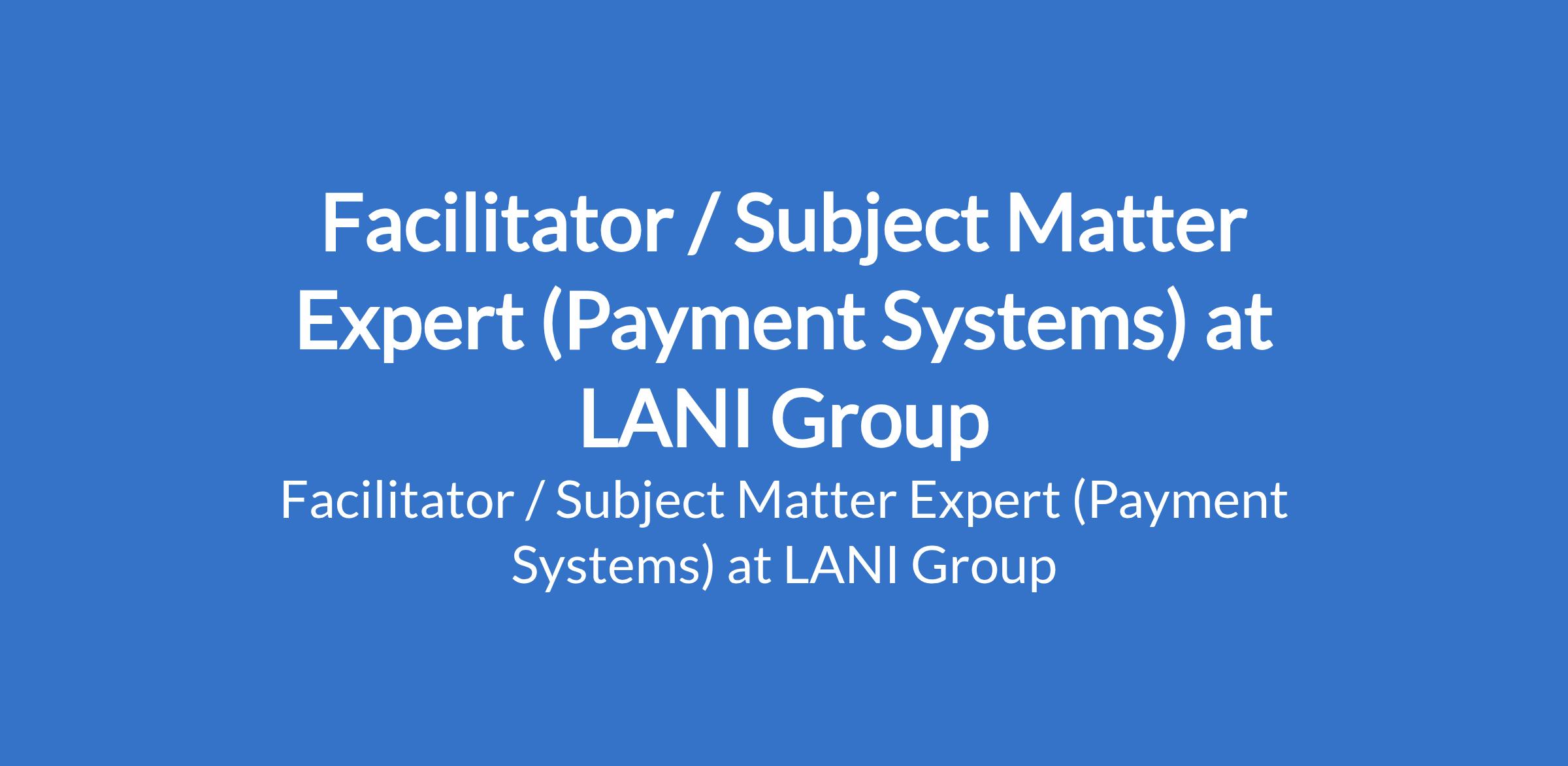 Facilitator / Subject Matter Expert (Payment Systems) at LANI Group