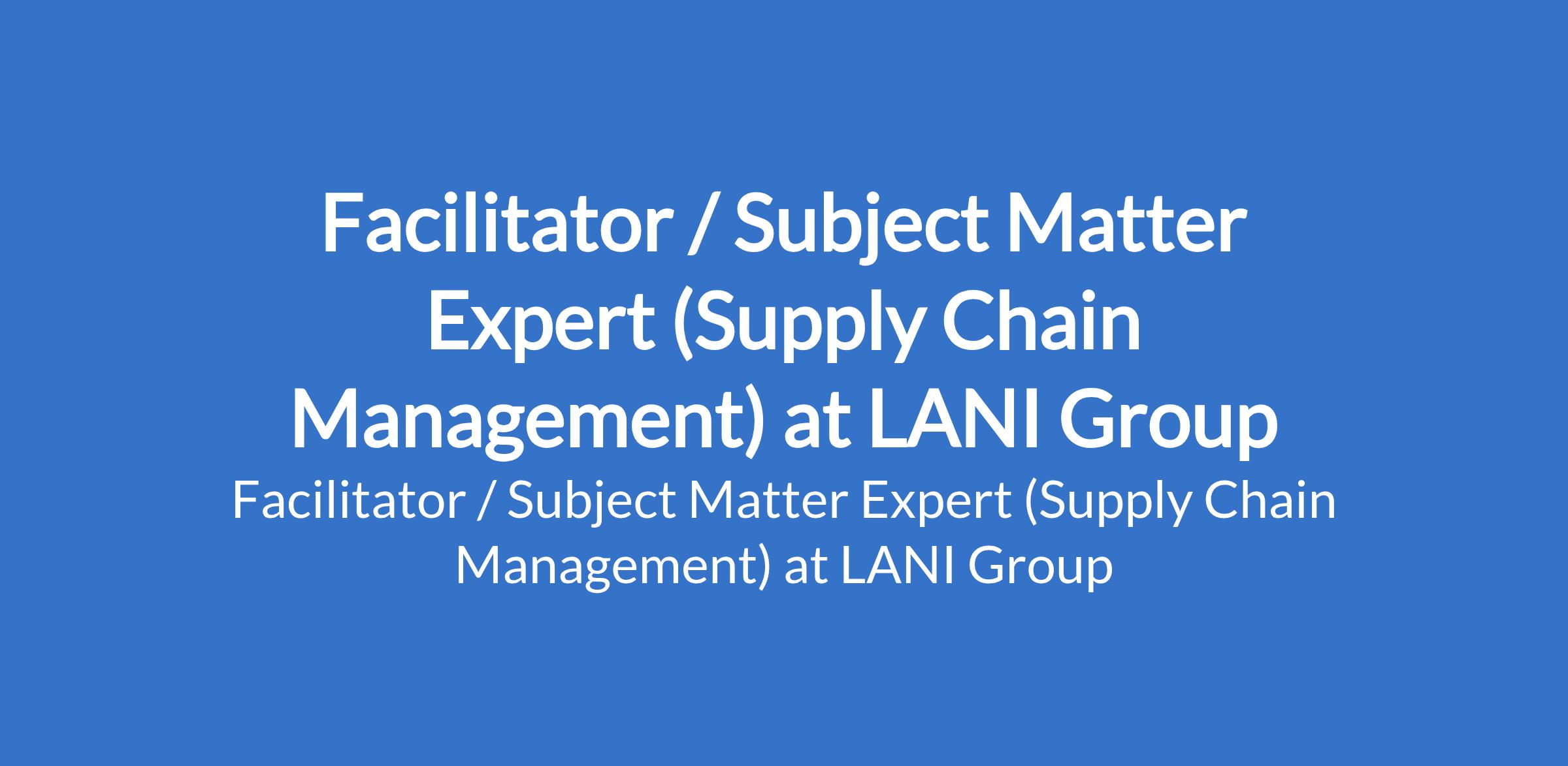 Facilitator / Subject Matter Expert (Supply Chain Management) at LANI Group