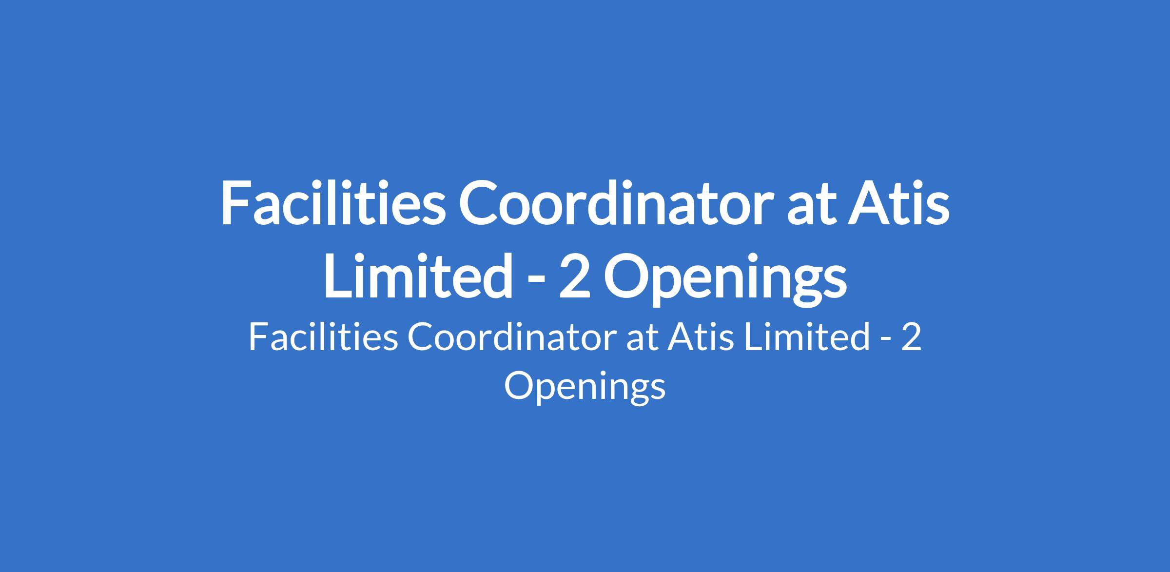 Atis Limited is recruiting to fill the position of: Facilities Coordinator. Victoria Island & Ikoyi, Lagos State. Interested candidates should possess a Bachelor's Degree with 4 - 5 years experience.