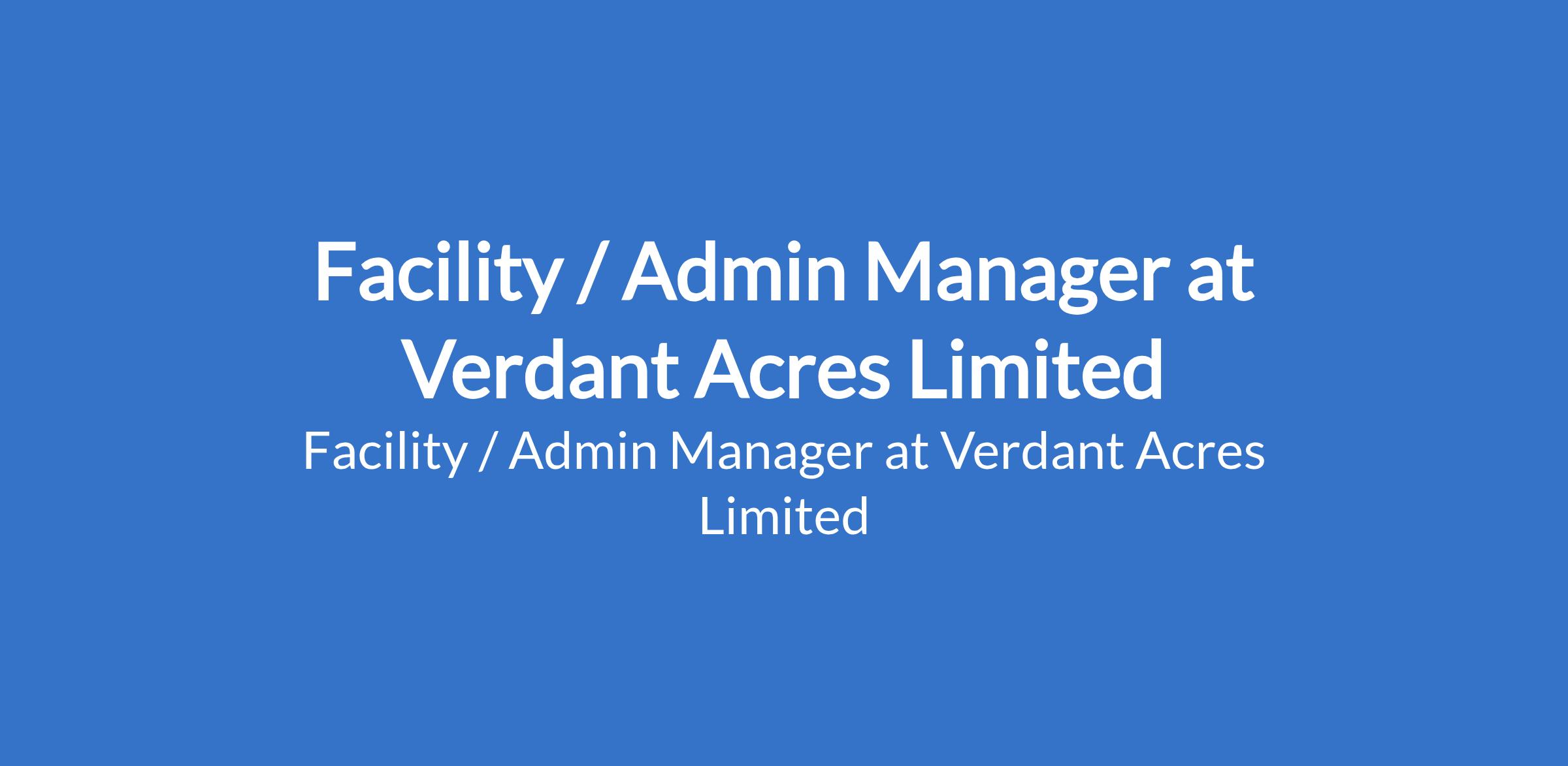 Facility / Admin Manager at Verdant Acres Limited