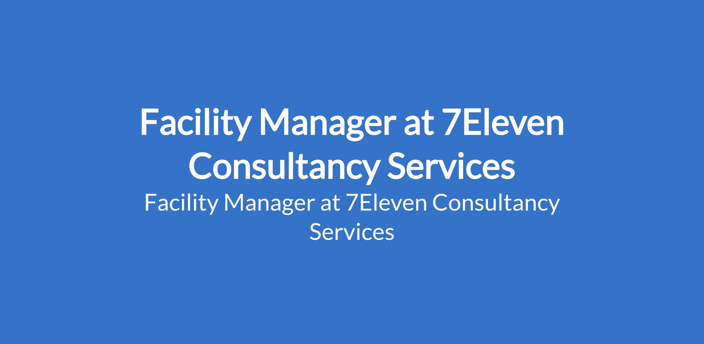 Facility Manager at 7Eleven Consultancy Services