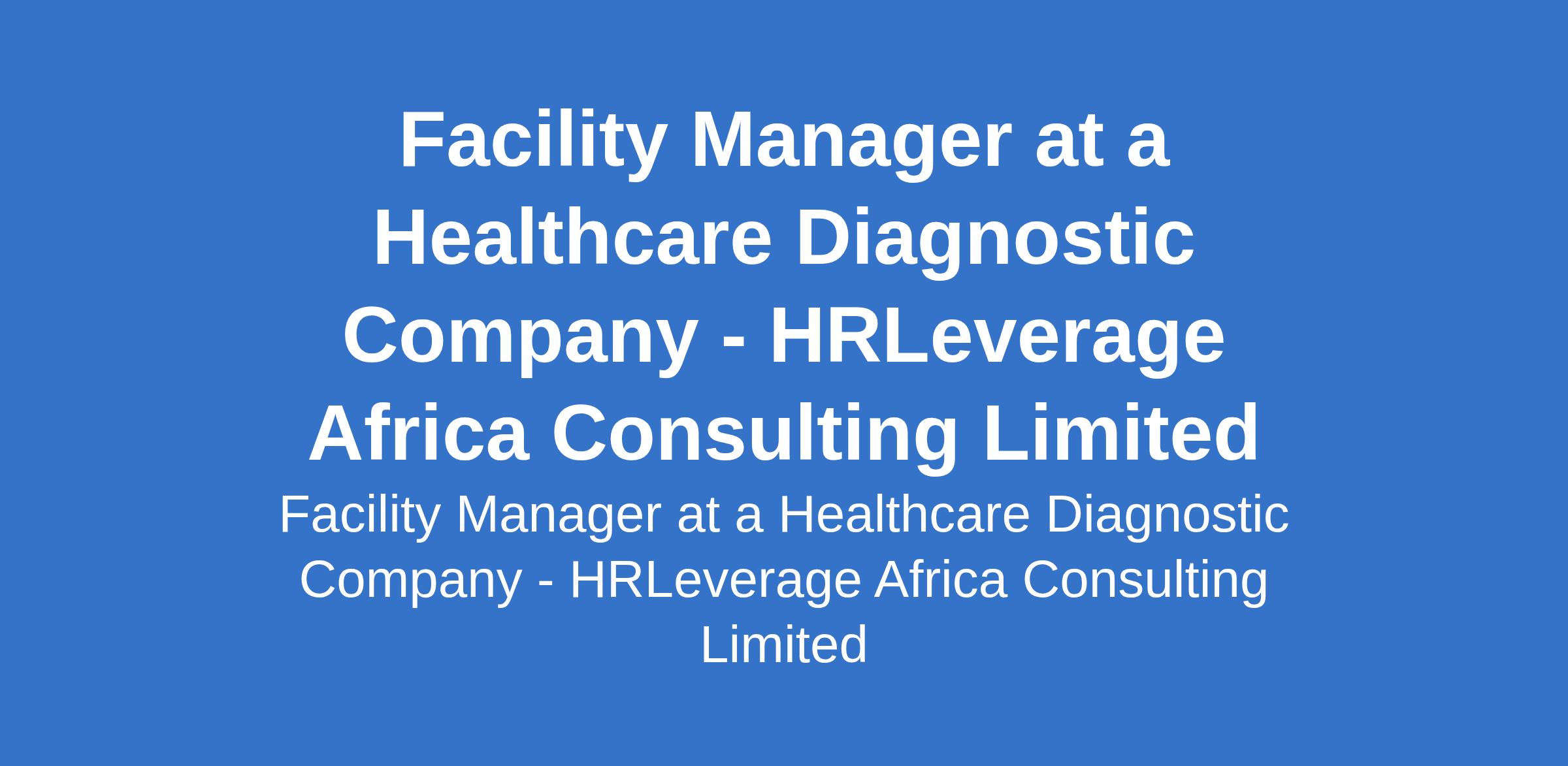 HRLeverage Africa Consulting Limited - Our client, a Healthcare Diagnostic company is recruiting to fill the position of: Facility Manager. The position is located in Utako, Abuja (FCT). Interested candidates should posses a Degree or Diploma in Facility Management, Engineering, Security, or related fields with a minimum of 5 years experience in facility management (healthcare or diagnostic facility preferred).