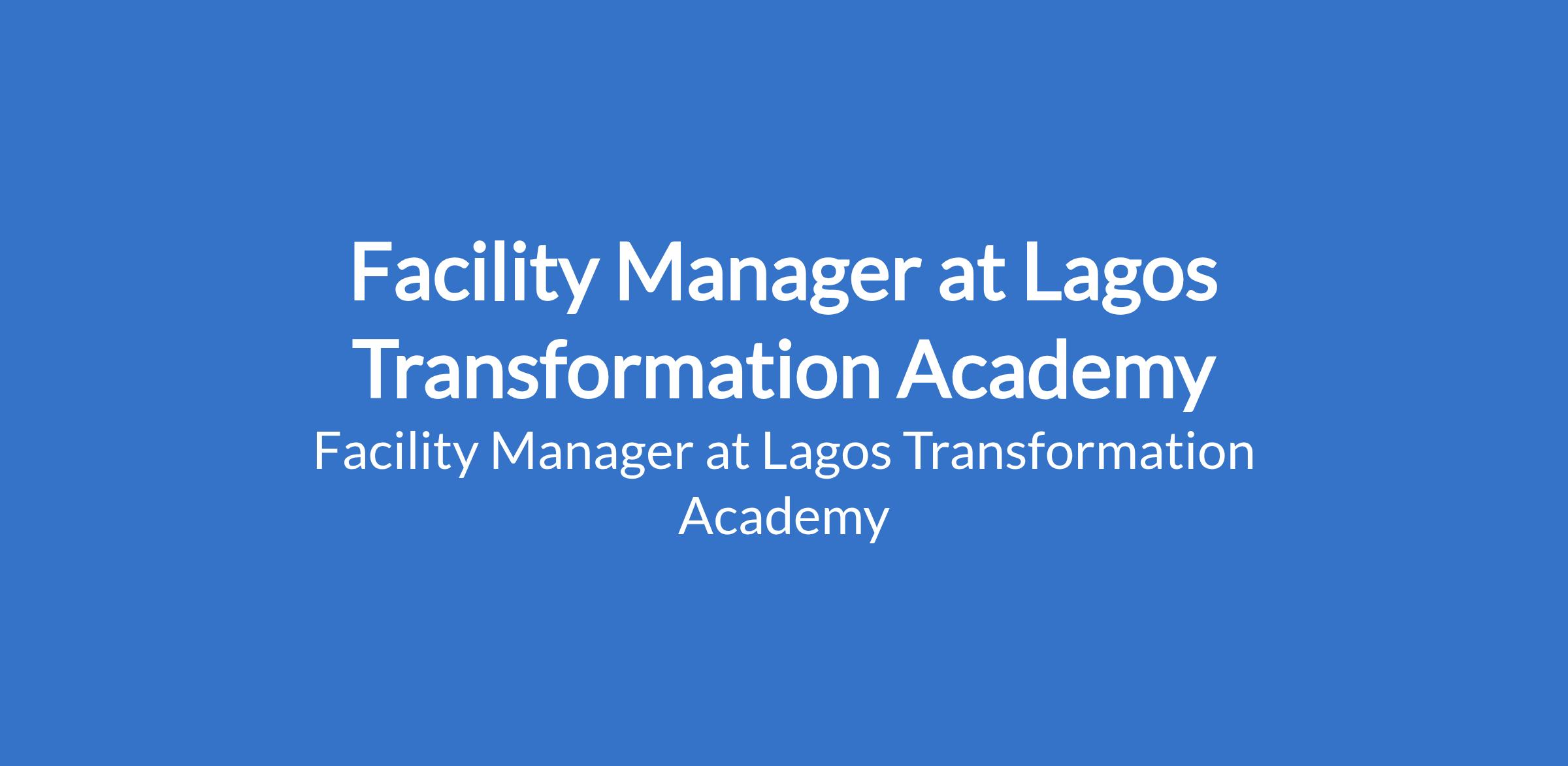 Lagos Transformation Academy is recruiting to fill the position of: Facility Manager. The position is located in Lagos State. Salary: N200,000 monthly. Interested candidates should possess relevant qualifications.