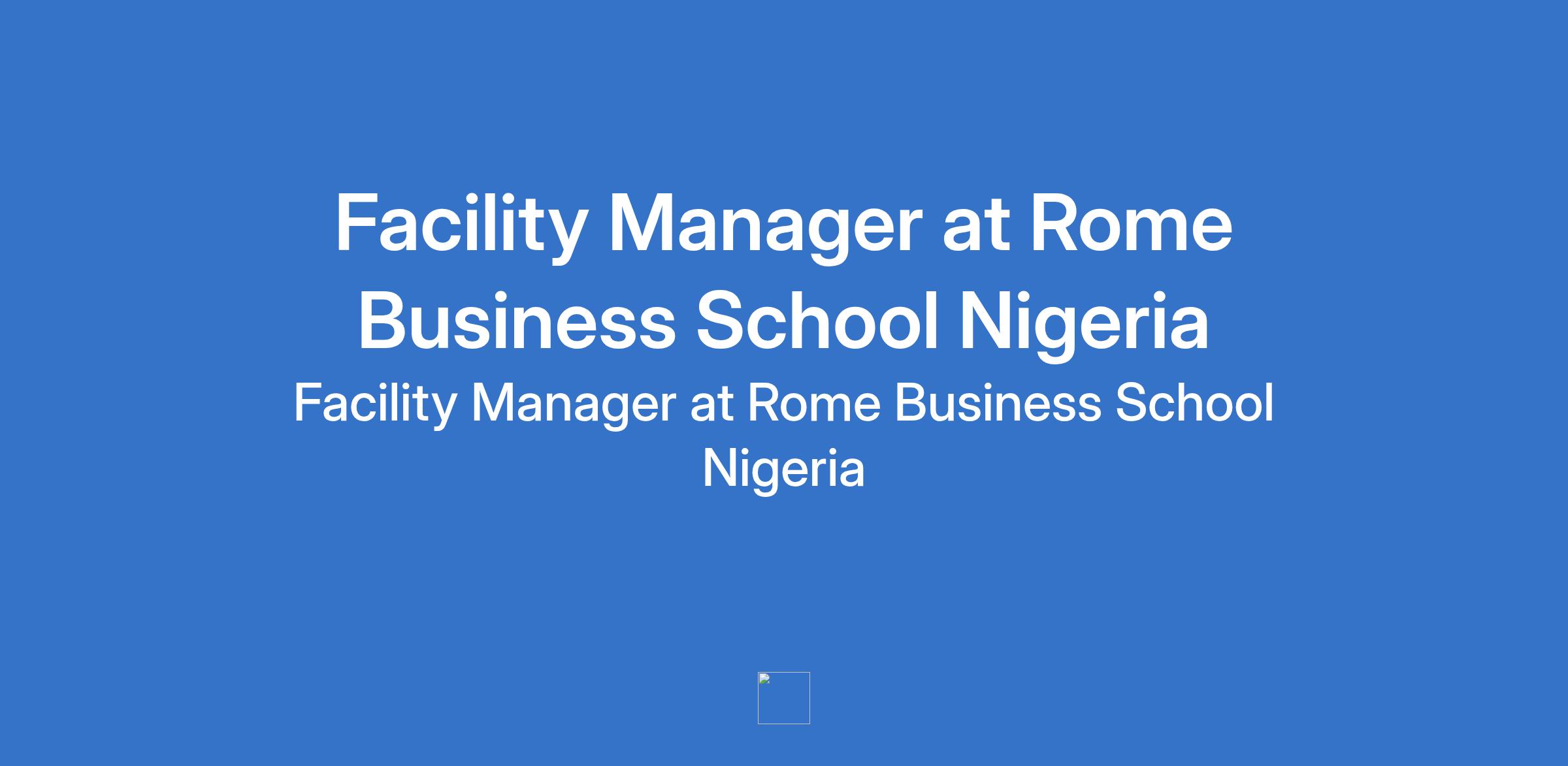 Rome Business School Nigeria is recruiting to fill the position of: Facility Manager. The position is located in Ikeja, Lagos State. Interested candidates should possess a BSc / HND qualification in Facilities Management, Engineering, Estate Management, or related disciplines with 3 5 years experience in facility and equipment management.