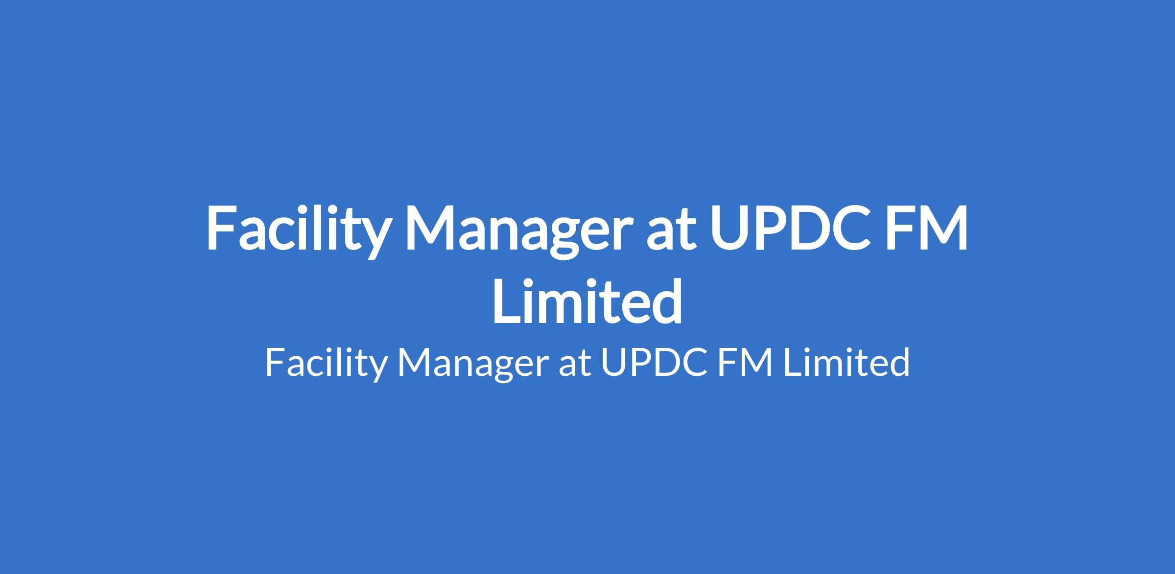 UPDC FM Limited is recruiting to fill the position of: Facility Manager. The position is located in CMS, Lagos State. Interested candidates should possess a Bachelors Degree in Mechanical Engineering, Electrical Engineering, or a related field with 2 5 years of technical experience in construction, building services, engineering maintenance, or a similar technical environment.