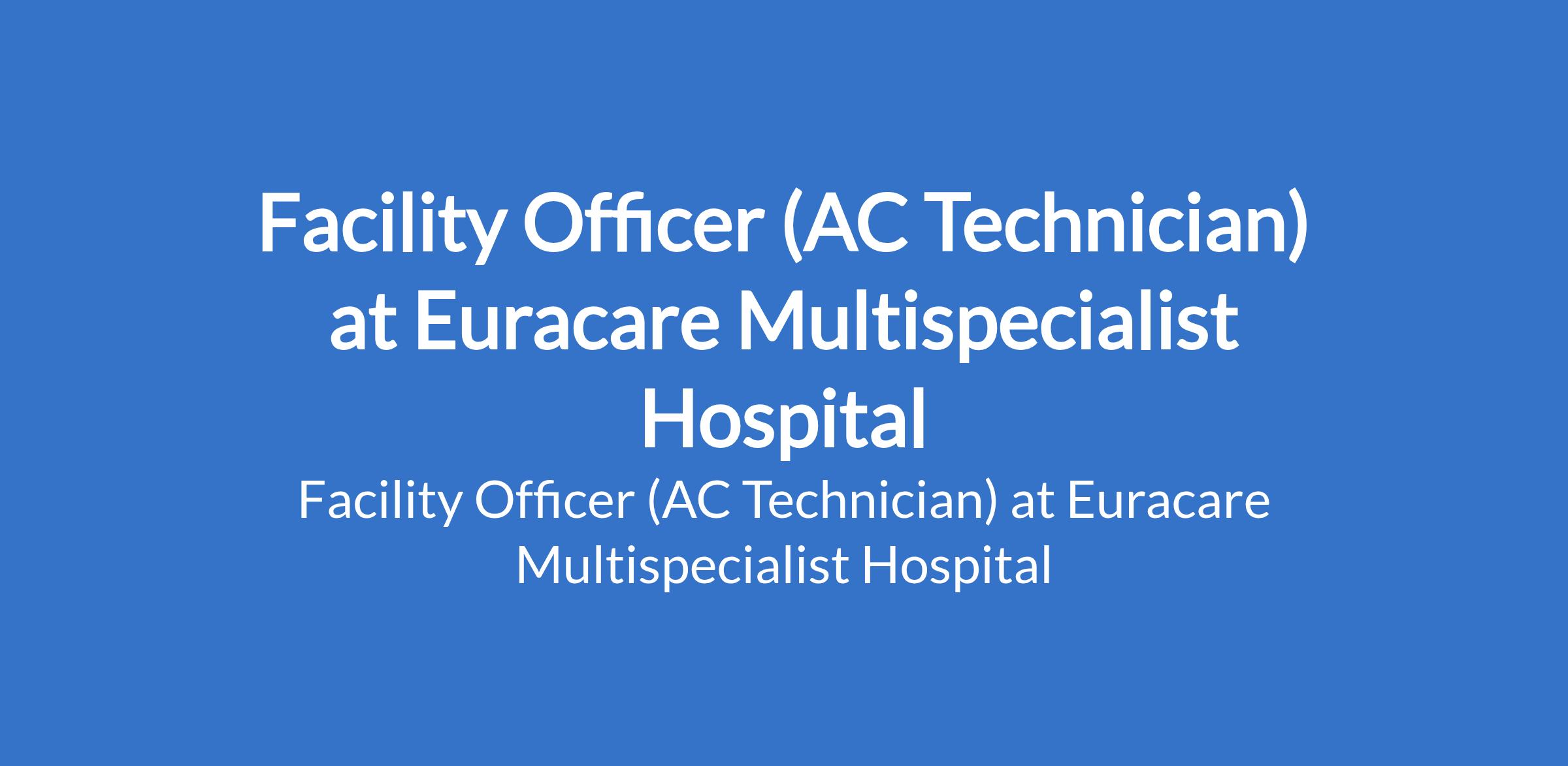 Euracare Multispecialist Hospital is recruiting to fill the position of: Facility Officer (AC Technician). The position is located in Victoria Island, Lagos State. Interested candidates should possess a minimum of HND or Bsc Degree in Engineering or any related field with at least 2 years experience with facility management duties, with emphasis on ability to manage primary, to secondary level AC repairs and other related mechanical maintenance assignments