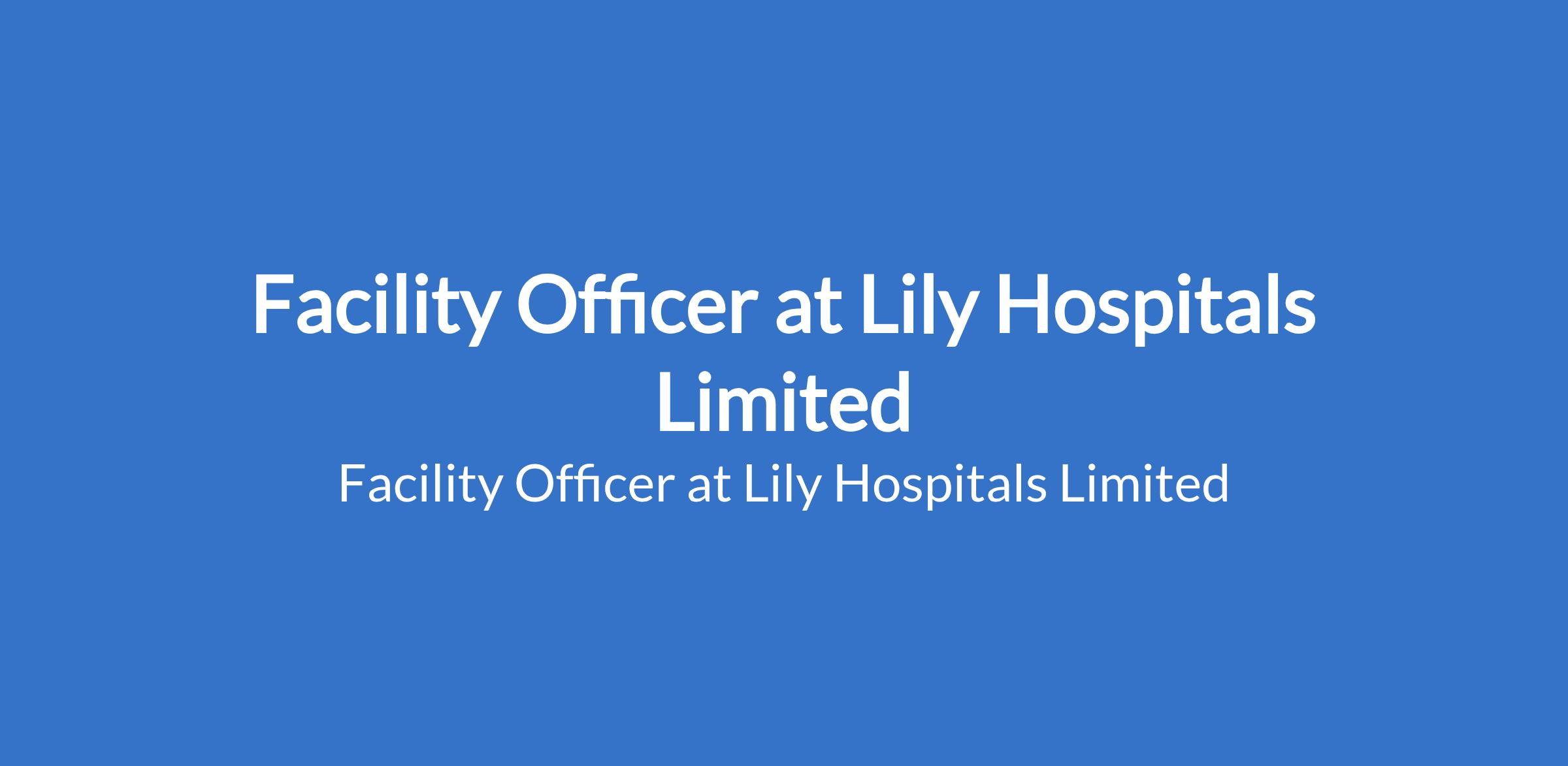 Lily Hospitals Limited is recruiting to fill the position of: Facility Officer. he position is located in Benin, Edo State. Interested candidates should possess minimum of an OND / HND / B.Sc. in Engineering, Estate Management, Facility Management, or related field